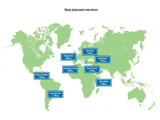 Βλέπουμε και την εικόνα με τις χιλιομετρικές αποστάσεις για να μετρήσουμε τα τροφοχιλιόμετρα της μπανάνας.