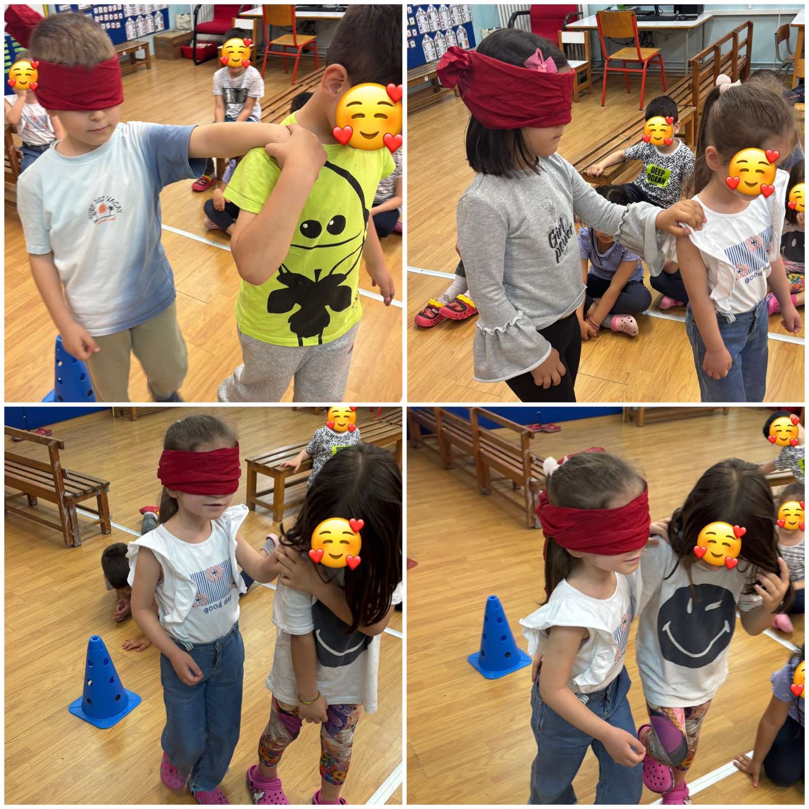Στόχος: Α) Ανάπτυξη της αυτοπεποίθησης. Β) Επίδειξη εμπιστοσύνης στον άλλον. Γ) Εξερεύνηση ενός χώρου. Δ) Αντίληψη της λειτουργίας των αισθήσεων.