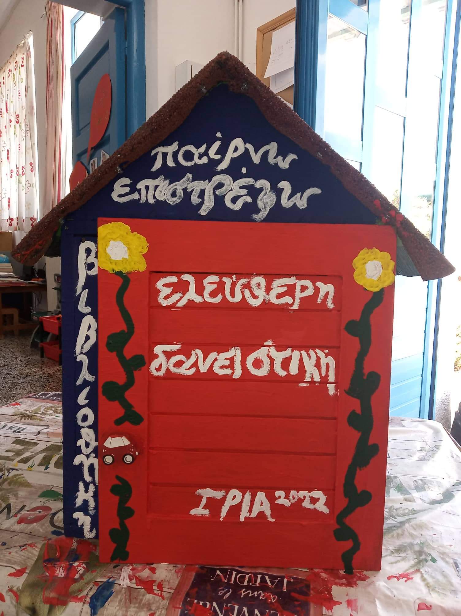 Την Τρίτη 14 Ιουνίου 2022 εγκαινιάστηκε στην κεντρική πλατεία των Ιρίων μια μικρή Ελεύθερη Δανειστική Βιβλιοθήκη, ως επισφράγισμα της δράσης των συμμετεχόντων στη Λέσχη Φιλαναγνωσίας που λειτούργησε στο Νηπιαγωγείο κατά το σχολικό έτος 2021-2022. Η κατασκευή της έγινε με υλικά που προϋπήρχαν στις δύο Σχολικές Μονάδες, με υλικά που προσφέρθηκαν με προθυμία από τη Σχολική Επιτροπή του Δήμου Ναυπλιέων, με υλικά που χορηγήθηκαν ευγενικά από επιχειρηματίες και ανθρώπους των Ιρίων και του Ναυπλίου, χάρη στην εθελοντική εργασία φίλων συνεργατών και φυσικά, χάρη στη δεξιοτεχνία των χεριών των μικρών και μεγάλων μαθητών. Πρωτοβουλία, Εθελοντισμός, Ατομική και Συλλογική Υπευθυνότητα, Αγάπη για το Βιβλίο και τον Συνάνθρωπο μπορύν και θα πρέπει να προβάλονται ως δείγματα Πολιτισμού και Αλληλεγγύης. Στην εκδήλωση παρευρέθηκαν οι εκπαιδευτικοί και των δύο σχολικών μονάδων, μικροί και μεγάλοι μαθητές, γονείς, εκπρόσωπος της Τοπικής Κοινότητας, εκπρόσωπος της Σχολικής Επιτροπής του Δήμου Ναυπλιεων και της Ένωσης Γονεών του Δήμου και όλοι μοιράστηκαν ευχές για την συνέχεια τέοιων δράσεων και για ένα Καλό Καλοκαίρι….με παρέα ένα Βιβλίο!!!