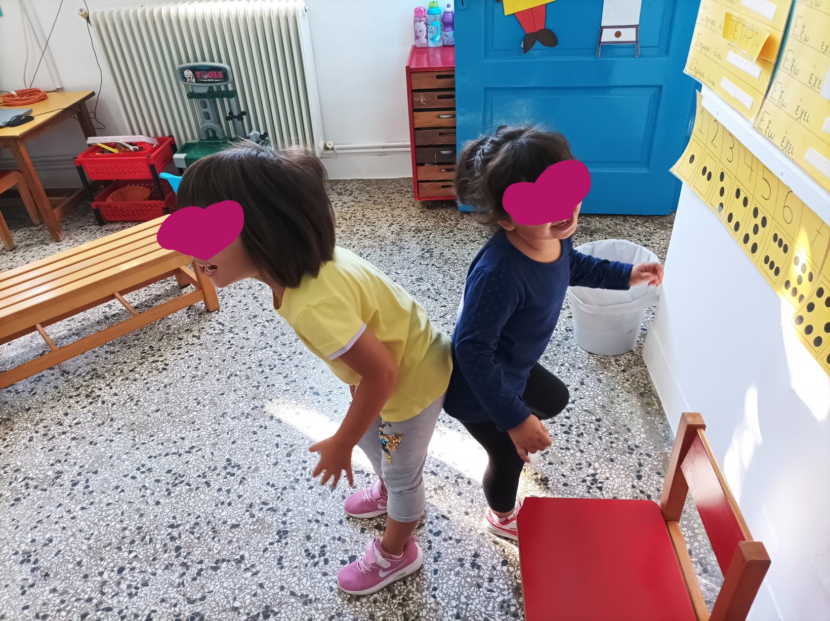 Οι πρώτες ημέρες στο Νηπιαγωγείο είναι αφιερωμένες στην αλληλογνωριμία και το δέσιμο της ομάδας μέσω παιχνιδιών και ομαδικών παιγνιωδών δράσεων. Βήμα βήμα διαμορφώνονται με την ενεργή συμμετοχή των παιδιών οι γωνιες της τάξης καθώς και το συμβόλαιο σωστών συμπεριφορών μέσα σε αυτή. Τα παιδιά γνωρίζονται μεταξύ τους, εξοικειώνονται σταδιακά με καθημερινές ρουτίνες της τάξης αλλά και με τη χρήση καινούριων υλικών, πειραματίζονται, ενώ οι αλλαγές στη φύση δίνουν και αυτές αφορμές για παρατήρηση, παιχνίδι, ομαδοποιήσεις, αυτοσχεδιασμού, δραματοποιήσεις, εικαστικές δημιουργίες.