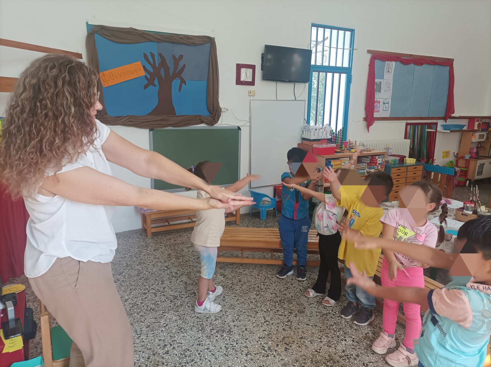 Η εισαγωγή της αγγλικής γλώσσας στο Νηπιαγωγείιο εστιάζει στον προφορικό λόγο και τη βιωματική μάθηση μέσω του παιχνιδιού και στο πλαίσιο συνεργασίας με τη Νηπιαγωγό της τάξης. Οι δραστηριότητες συναποφασίζονται και οργανώνονται από τις δύο εκπαιδευτικούς βάσει των αναγκών και των ενδιαφερόντων των μαθητών/τριών, λαμβάνοντας πάντα υπόψη ταδιαφορετικά προσωπικά μαθησιακά προφίλ αυτών.