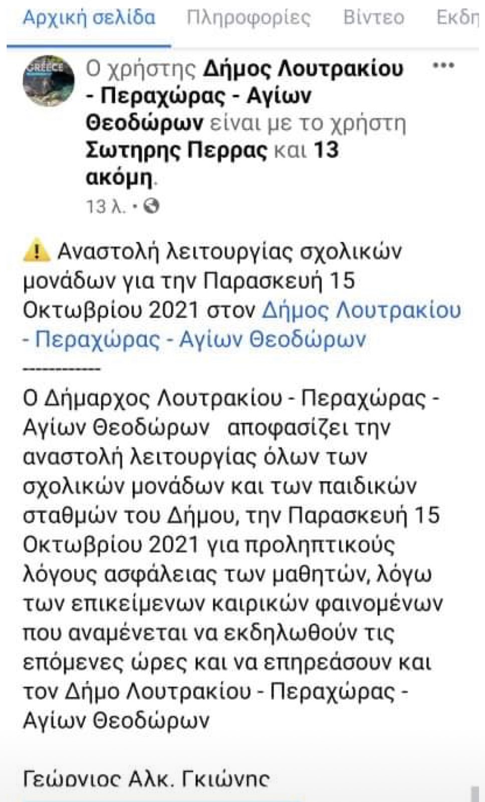 Αναστολή Λειτουργίας Σχολικών Μονάδων