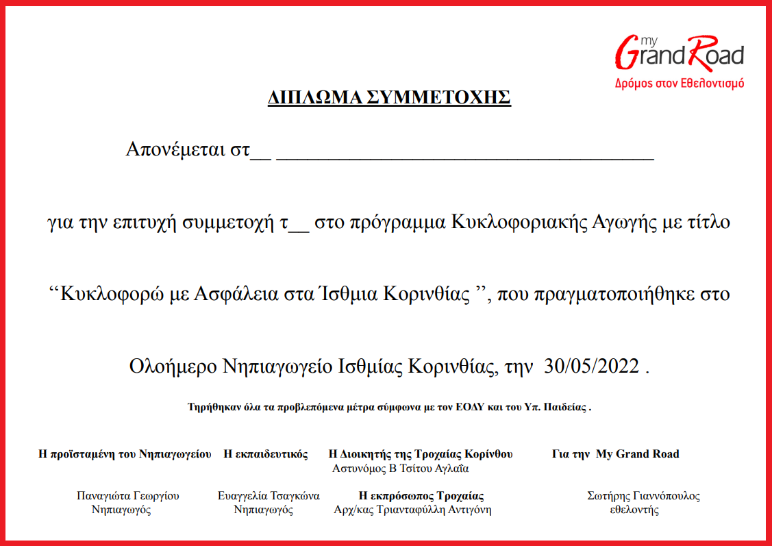 Το αναμνηστικό δίπλωμα συμμετοχής μας!