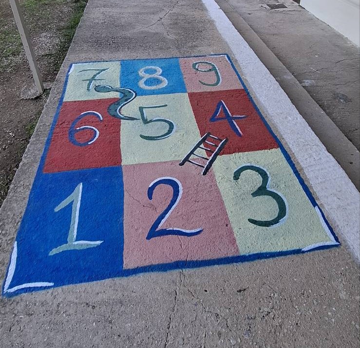 Με ιδιαίτερη χαρά ευχαριστούμε την καλλιτέχνιδα Ζωή Μπαξεβανάκη που ανέλαβε τη δημιουργία επιδαπέδιων παιχνιδιών στην αυλή μας, προσφέροντας στα παιδιά έναν ακόμη πιο χαρούμενο, δημιουργικό και παιγνιώδη χώρο. Η καλλιτεχνική της δουλειά ομορφαίνει το σχολικό περιβάλλον και εμπλουτίζει την καθημερινή εμπειρία των νηπίων μας, ενισχύοντας το παιχνίδι, τη συνεργασία και τη φαντασία τους.
