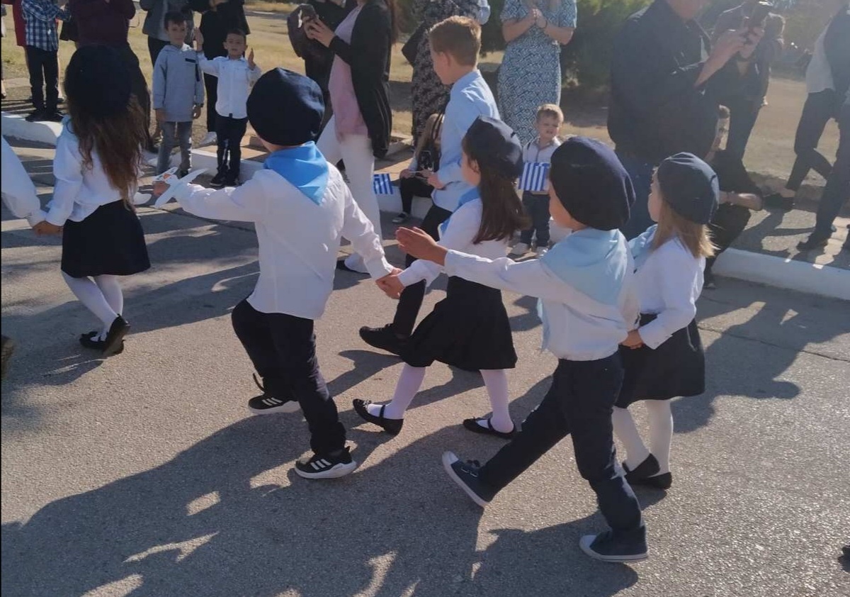 Ακολούθησε η μαθητική παρέλαση! Οι μαθητές μας παρέλασαν κρατώντας στον καρπό τους το περιστέρι της ειρήνης!