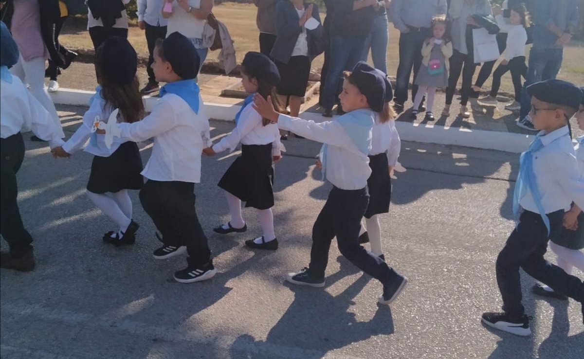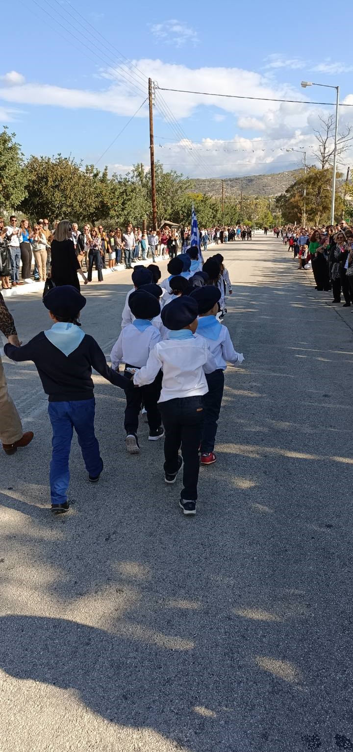 Η παρέλαση των μαθητών/τριών μας με σημαιοφόρο τον μαθητή Γιάννη Καραχάλιο!