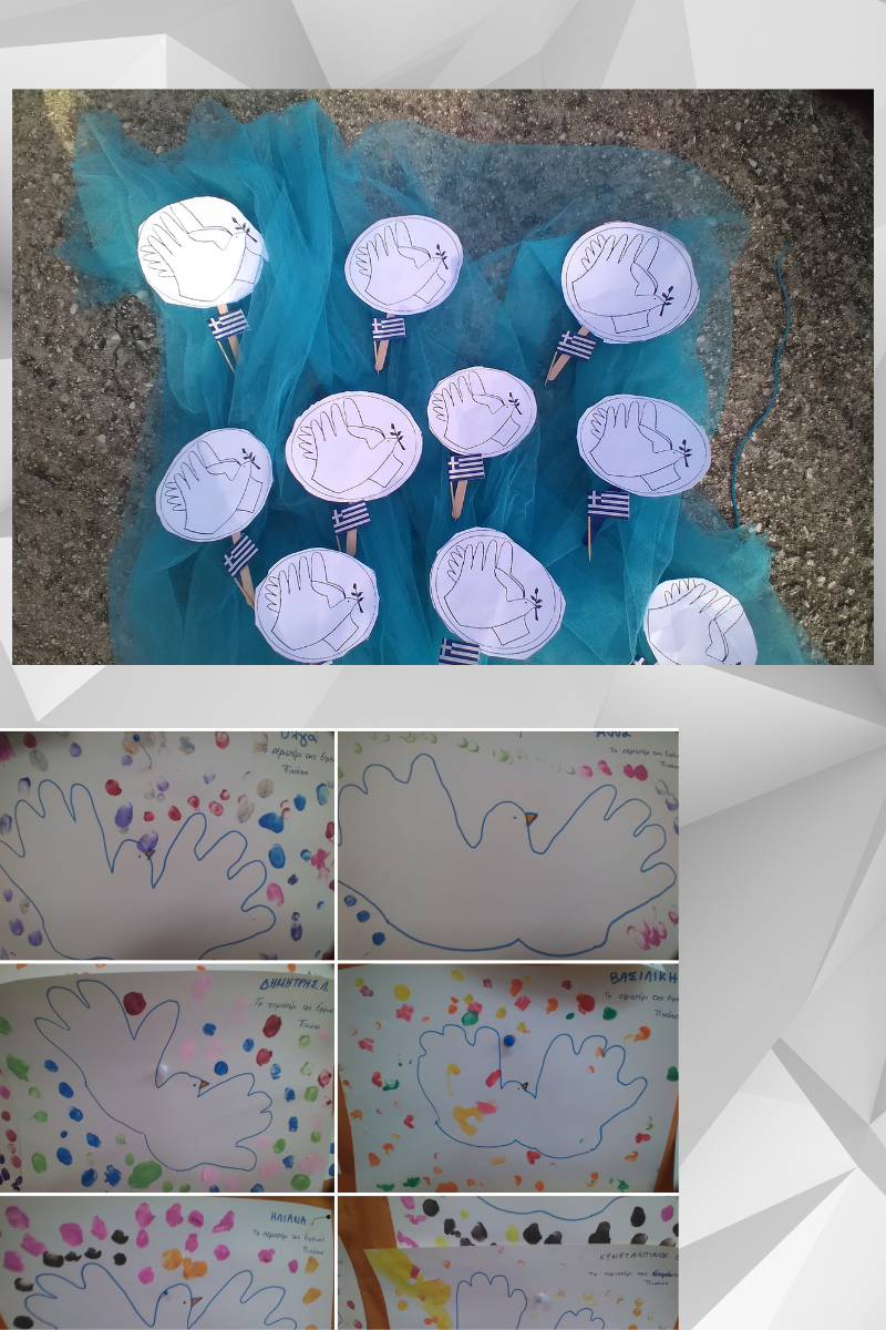 Το έπος του ’40 με το θρυλικό «ΟΧΙ» προκάλεσε συζητήσεις για τα άσχημα που προκαλεί ο πόλεμος, αλλά και για τη σημαντικότητα του πολυπόθητου αγαθού της «ειρήνης»! Υλοποιήθηκαν, με αυτή την αφορμή, ποικίλες δράσεις, με αποκορύφωμα την παραγωγή συλλογικών εικαστικών έργων με τίτλο «Ναι στην ειρήνη, Όχι στον πόλεμο»