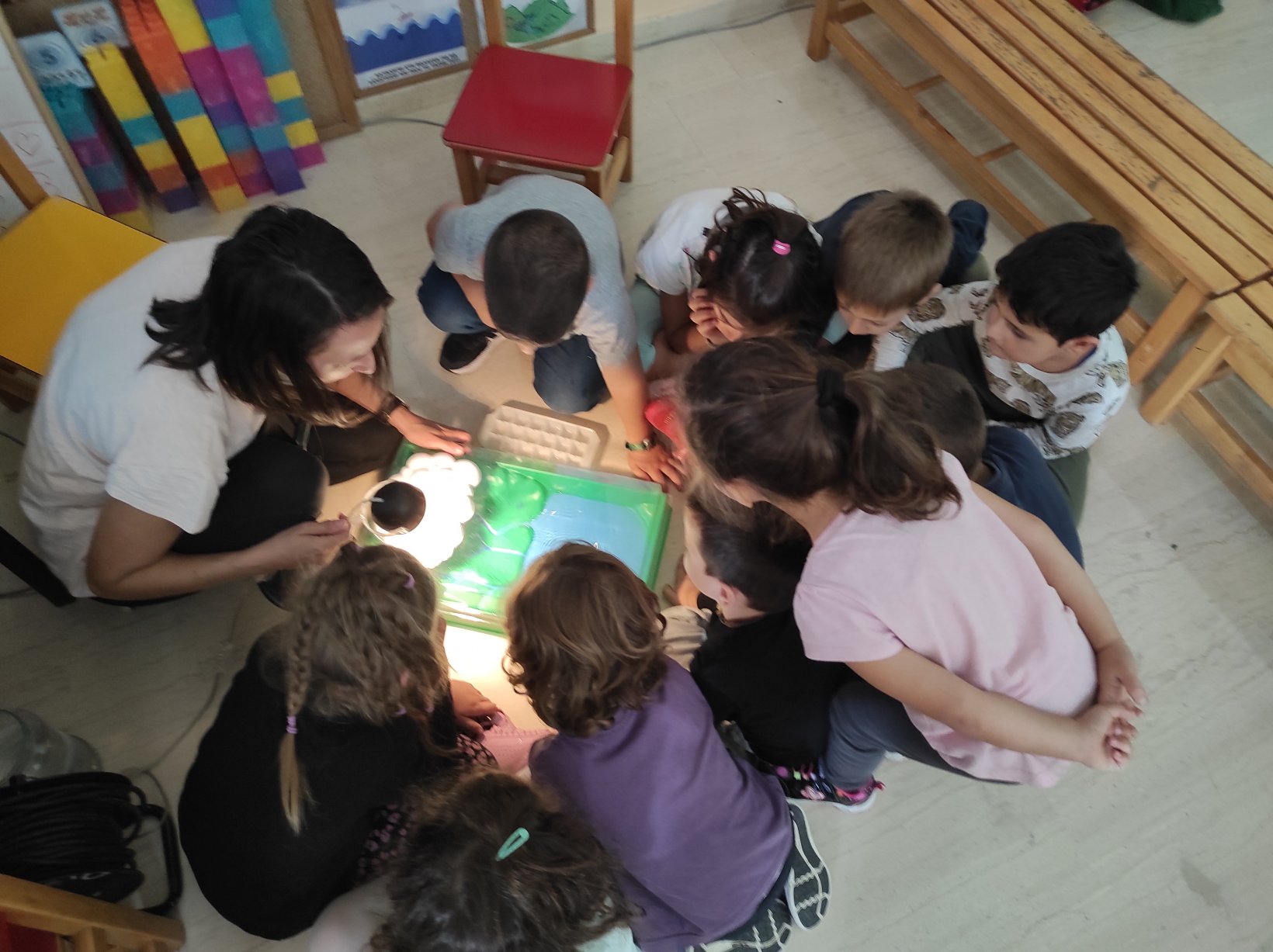 Τα παιδιά για να κατανοήσουν καλύτερα τον Κύκλο του Νερού, έγιναν μικροί εξερευνητές και πραγματοποίησαν ένα πείραμα προσομοίωσης της διαδικασίας του νερού (θάλασσα, ήλιος, εξάτμιση, συγκέντρωση-σύννεφα, βροχή, υποθαλάσσια ύδατα κ.α.).