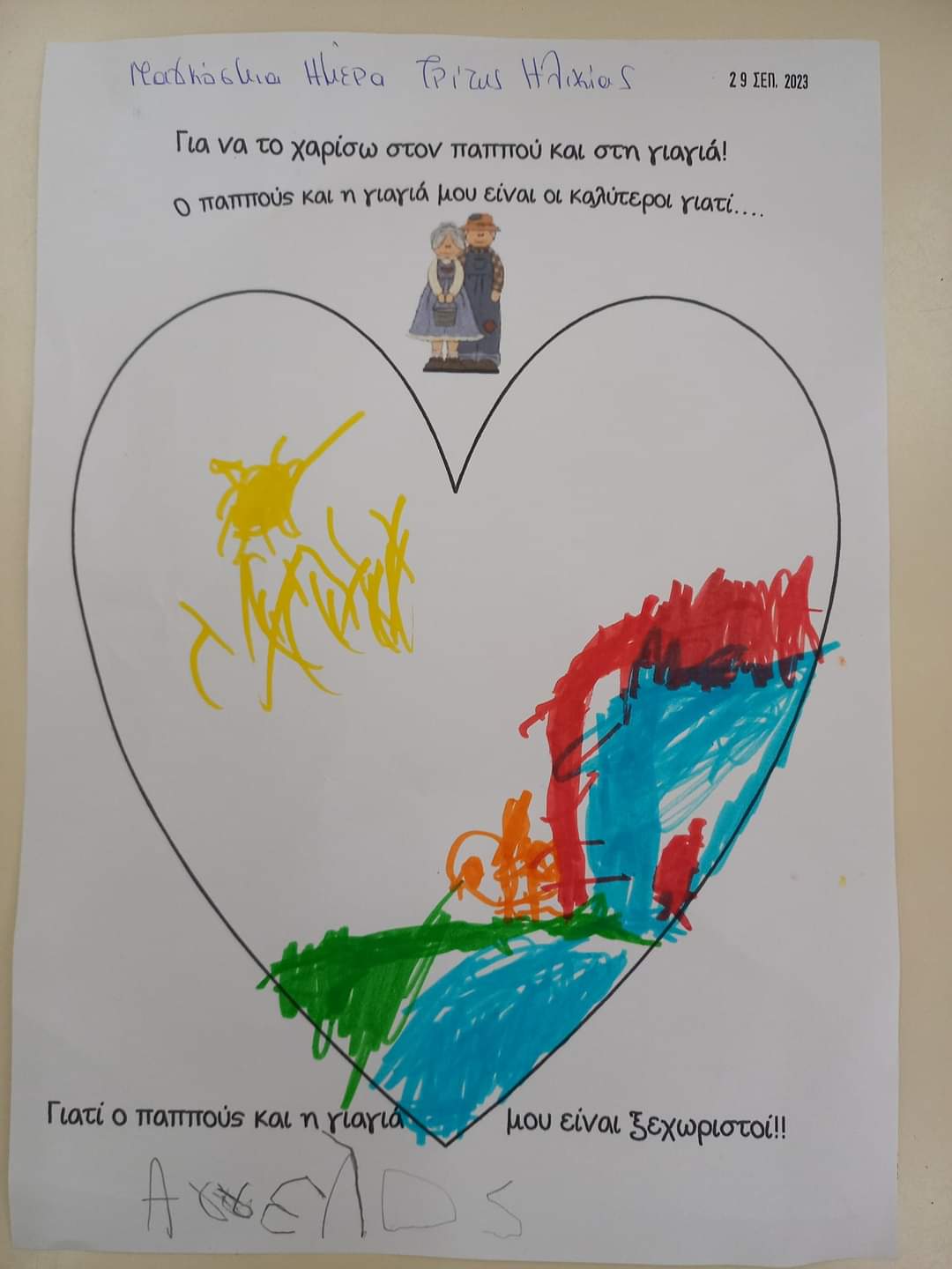 1 Οκτωβρίου: Παγκόσμια ημέρα Τρίτης Ηλικίας!! Αγαπάμε τον παππού και τη γιαγιά και πρέπει να τους τιμούμε γιατί είναι ΞΕΧΩΡΙΣΤΟΙ ΜΕΣΑ ΣΤΗΝ ΚΑΡΔΙΑ ΜΑΣ. Χρόνια πολλά!! Τα παιδάκια του νηπιαγωγειου μας έφτιαξαν καρτούλα για να τους κάνουν δωράκι την Κυριακή που γιορτάζουν!