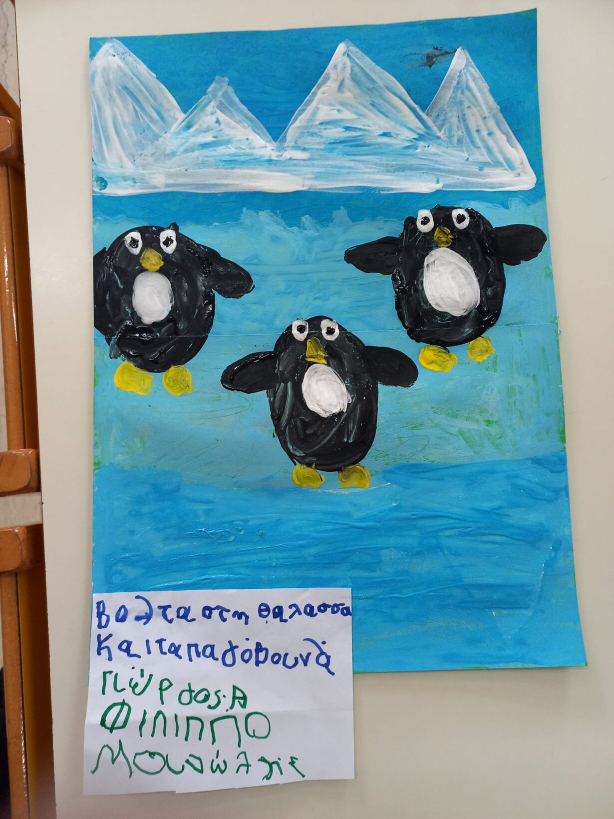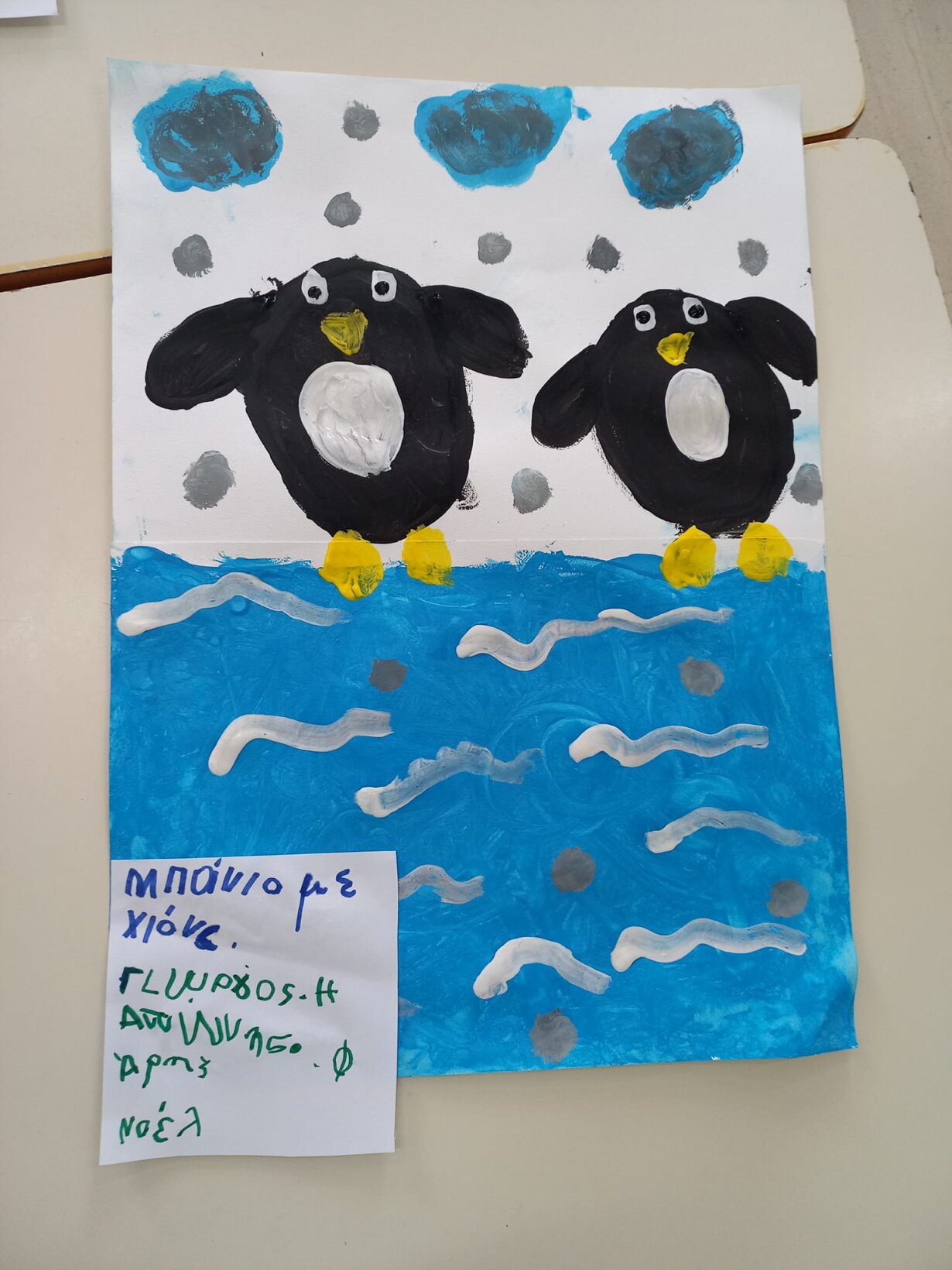 Χειμώνας ήρθε και δε μπορούσαμε να μην ασχοληθούμε με τα υπέροχα ζωακια των πάγων!Αγαπημένο όμως όλων, ο υπέροχος πιγκουίνος!! Και τι δε κάναμε!! Πιγκουινοδρομιες με μπαλόνια, διαδρομές με τη ρομποτική μας μελισσουλα και οδηγήσαμε τον πιγκουίνο στο αυγό του, παιχνίδια με ζάρι και ταισαμε τον πιγκουίνο ψαράκια! Μάθαμε τον αριθμό 6 και κάναμε πολλές πολλές δραστηριότητες για να το εμπεδώσουμε καλά!! Στο τέλος όμως τα παιδιά με αφορμή κάποια έργα τέχνης που συζητήσαμε, δημιούργησαν τα δικά τους εργα τέχνης , έδωσαν τιτλους και φυσικά υπέγραψαν σαν μεγάλοι και σπουδαίοι ζωγράφοι τα αριστουργηματα τους!! Συγχαρητήρια σε όλα τα παιδάκια μας, ήταν υπέροχα!!![]()