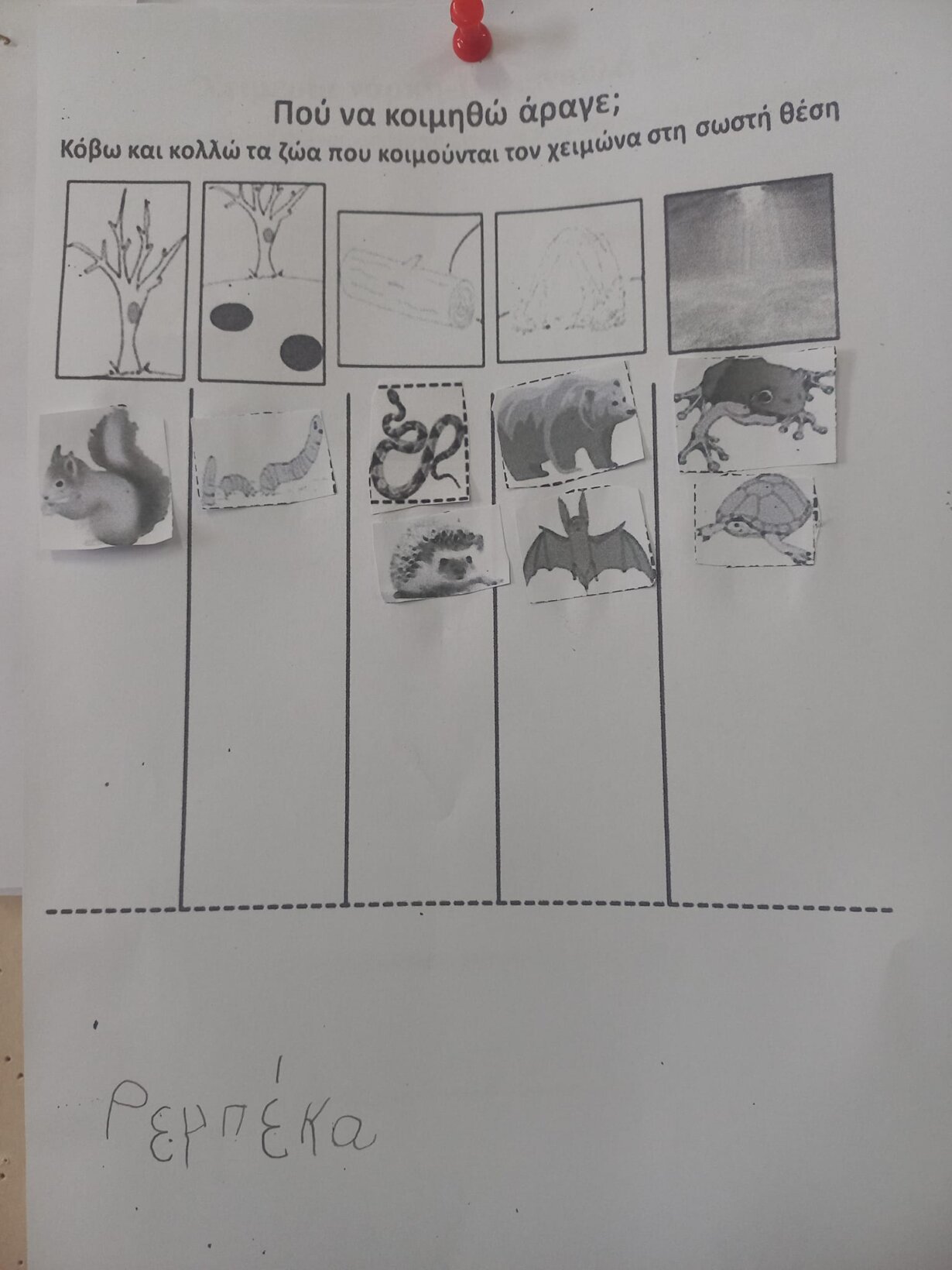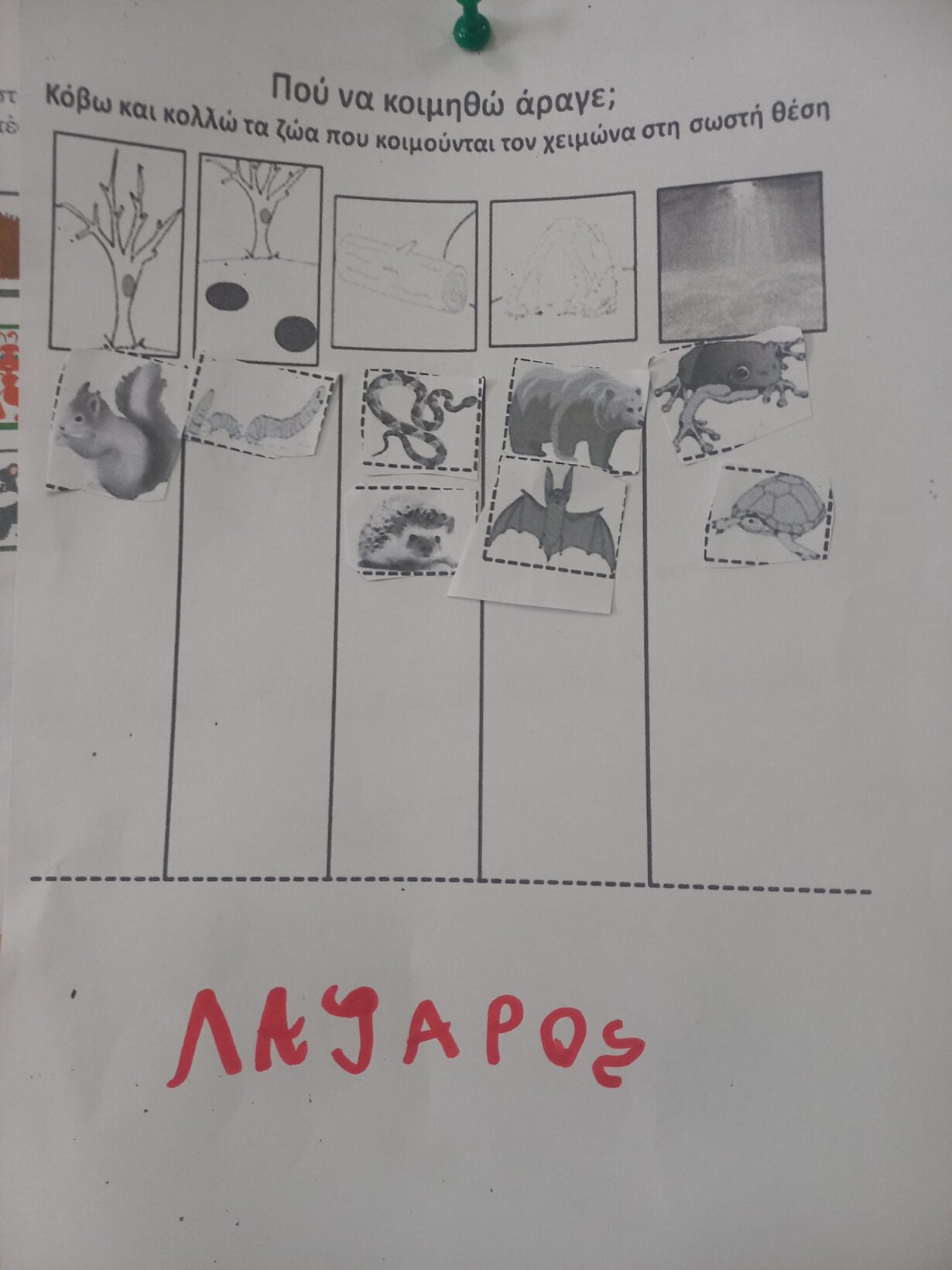 Ο Χειμώνας καλά κρατεί και εμείς ασχοληθήκαμε με τη Χειμερία Νάρκη. Πολλές δραστηριότητες και τα παιδάκια μας ευχαρίστηθηκαν πολύ. Κάναμε κατασκευή, εργασίες, μάθαμε τη φωνούλα Σ,σ, τη γράψαμε στον πίνακα, την περπατήσαμε, κάναμε λεκτικά παιχνίδια με ζάρι γραμμάτων, δραματοποιήσαμε την κατάσταση της χειμερίας νάρκης και γίναμε αρκουδίτσα, φιδάκια, βατραχάκια και σκατζοχοιράκια που ακολουθώντας το σωστό μονοπάτι οδηγούμαστε στη φωλίτσα μας για ύπνο!! Παίξαμε παιχνίδι με σωστό και λάθος!! Διαδικτυακό παιχνίδι αναγνώρισης της σωστής φωλιάς κάθε ζώου.Φυσικά από την παρέα μας δεν έλλειψε και η ρομποτική μέλισσα που βοήθησε τα ζωάκια της χειμερίας νάρκης να οδηγηθούν στη φωλίτσα τους μέσα από προγραμματισμένες διαδρομές!! Για άλλη μια φορά μπράβο στα παιδάκια μας!