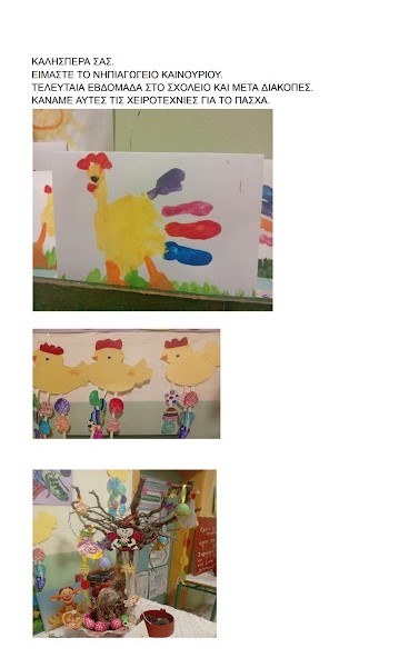 ΣΥΝΕΡΓΑΣΙΑ ΜΕΤΑΞΥ Ν/ΓΕΙΩΝ ΝΗΠΙΑΓΩΓΕΙΟ ΚΑΛΛΙΦΩΝΙΟΥ 30 Απριλίου 2025 ΕΝΟΨΗ ΤΩΝ ΗΜΕΡΩΝ ΤΟΥ ΠΑΣΧΑ , ΑΝΤΑΛΑΞΑΜΕ ΕΥΧΕΣ ΚΑΙ ΠΑΣΧΑΛΙΑΤΙΚΕΣ ΧΕΙΡΟΤΕΧΝΙΕΣ ΜΕ ΤΑ ΠΑΙΔΙΑ ΚΑΙ ΤΙΣ ΕΚΠ/ΚΟΥΣ ΤΟΥ Ν/ΓΕΙΟΥ ΚΑΙΝΟΥΡΙΟΥ ΦΘΙΩΤΙΔΑΣ.