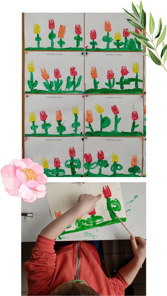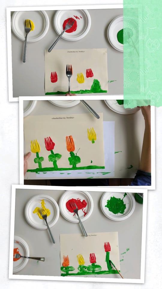 Και επειδή όπως έχετε καταλάβει μας αρέσει να πειραματιζόμαστε με διαφορετικά υλικά και τεχνικές στις δραστηριότητες μας,φτιάξαμε υπέροχες χρωματιστές τουλίπες με ….πιρούνια!Εμπνευσή μας οι Χιώτικες Λαλάδες φυσικά.