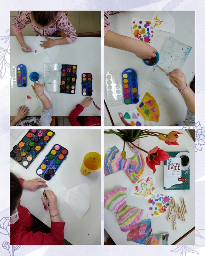 Η αγάπη μας για αυτό το πανέμορφο έντομο μεταφέρθηκε και στην αυλή μας αφού ζωγραφίσαμε όλοι μαζί στον μαυροπίνακα της αυλής μας μια τεράστια πεταλούδα.Έπειτα δημιουργήσαμε πεταλούδες χρησιμοποιώντας φίλτρα του καφέ και ξύλινα μανταλάκια.Είμαστε σωστοί καλλιτέχνες!