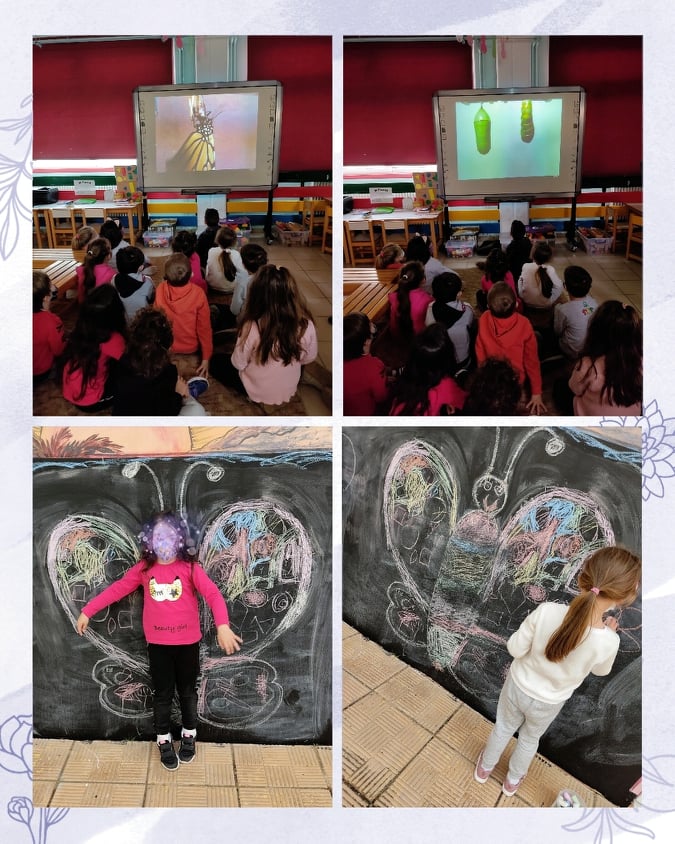 Μαζί με την άνοιξη έρχονται και τα έντομα φυσικά!Ένα απο αυτά είναι και η αγαπημένη των παιδιών πεταλούδα.Ο κύκλος ζωής της πεταλούδας είναι κάτι που μας γοητεύει όλους και ιδιαίτερα τα παιδιά και για τον λόγο αυτό παρακολουθήσαμε όλοι μαζί στον διαδραστικό πίνακα ένα timelapse Βίντεο της μεταμόρφωσης της κάμπιας σε πεταλούδα.