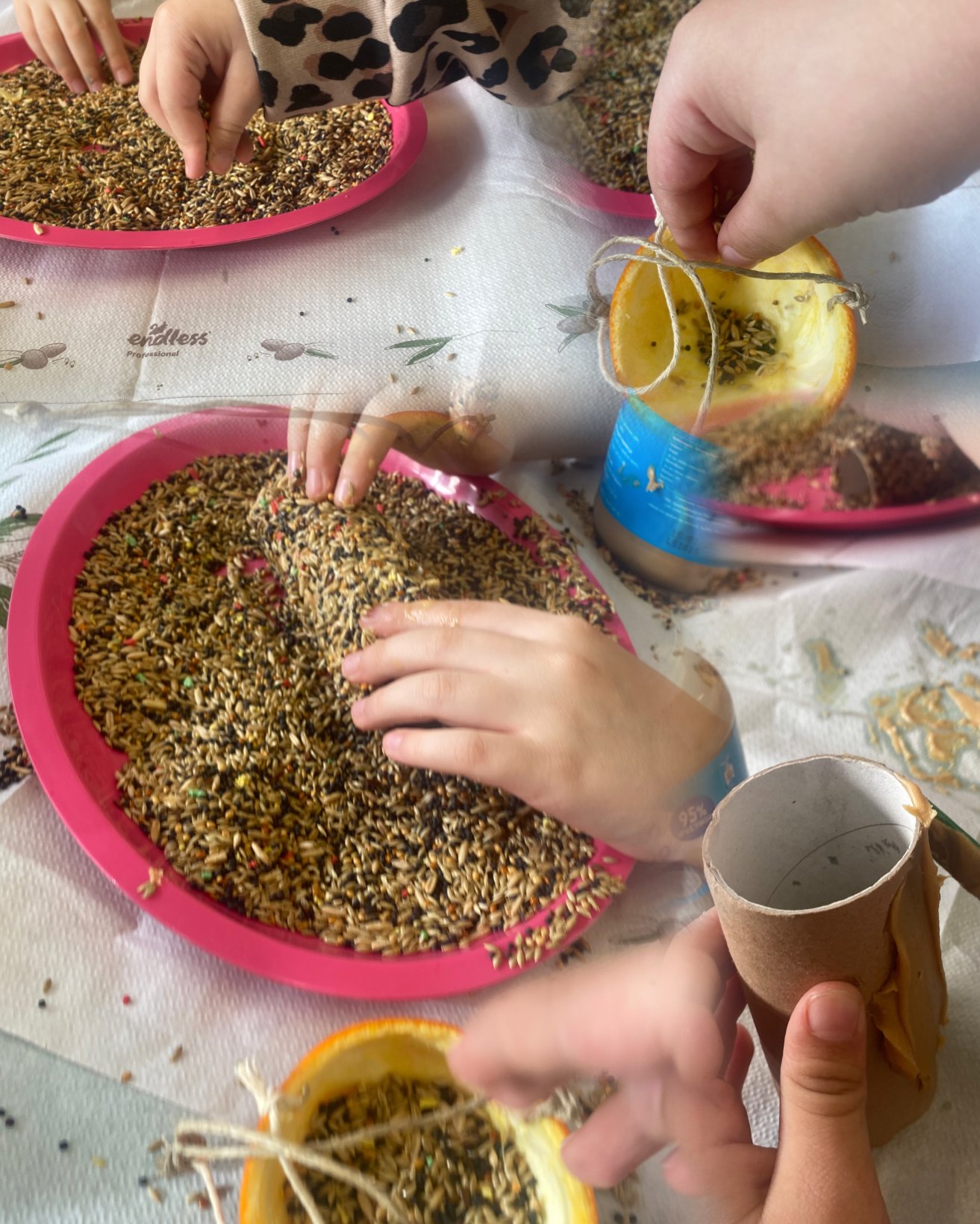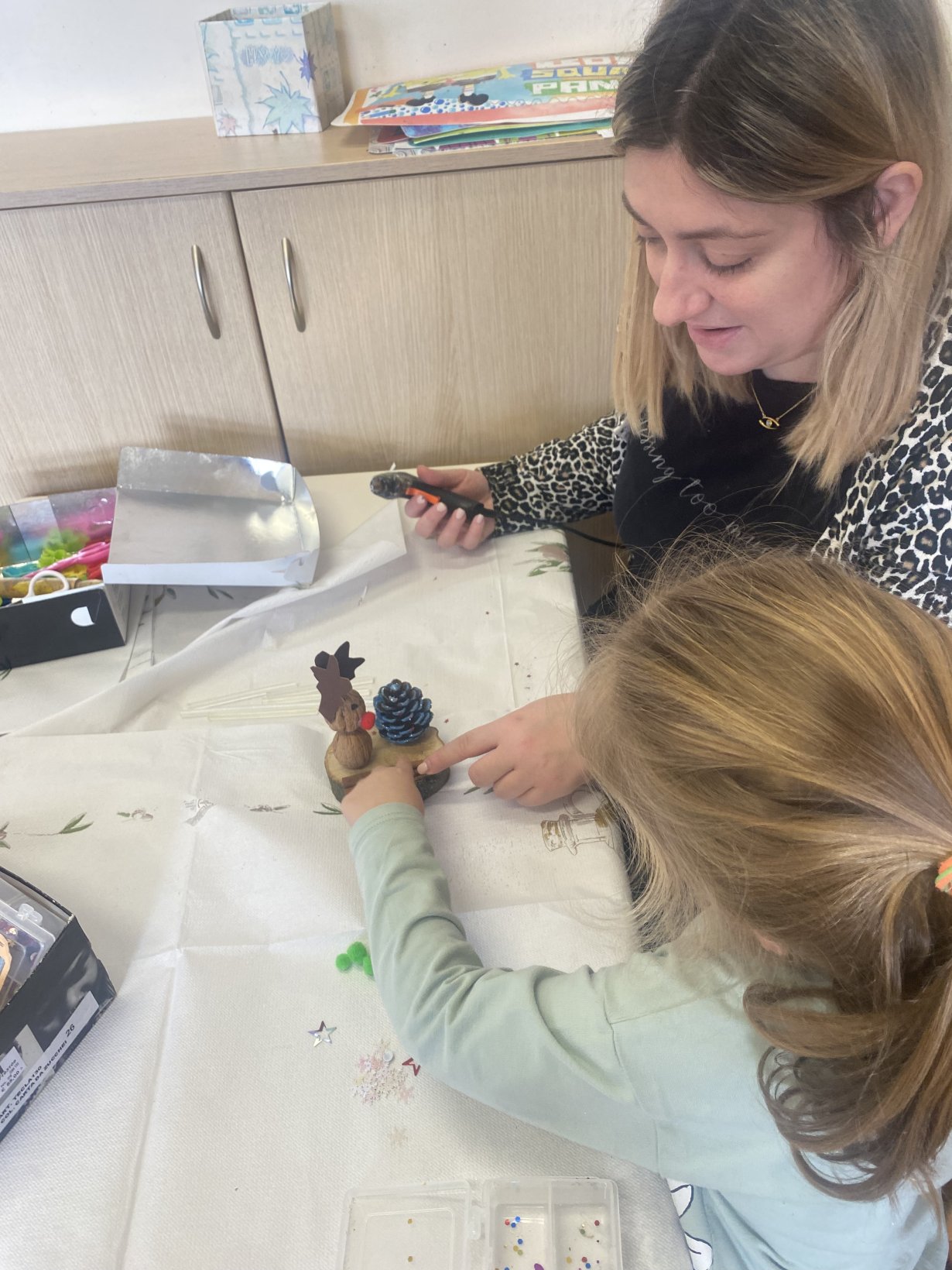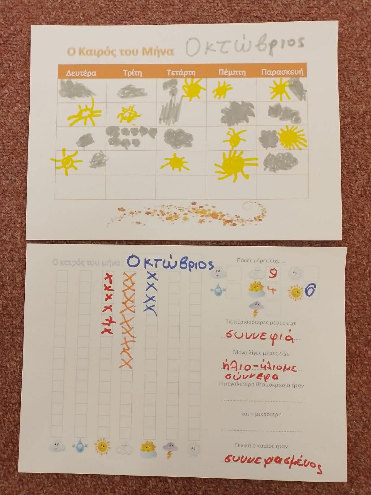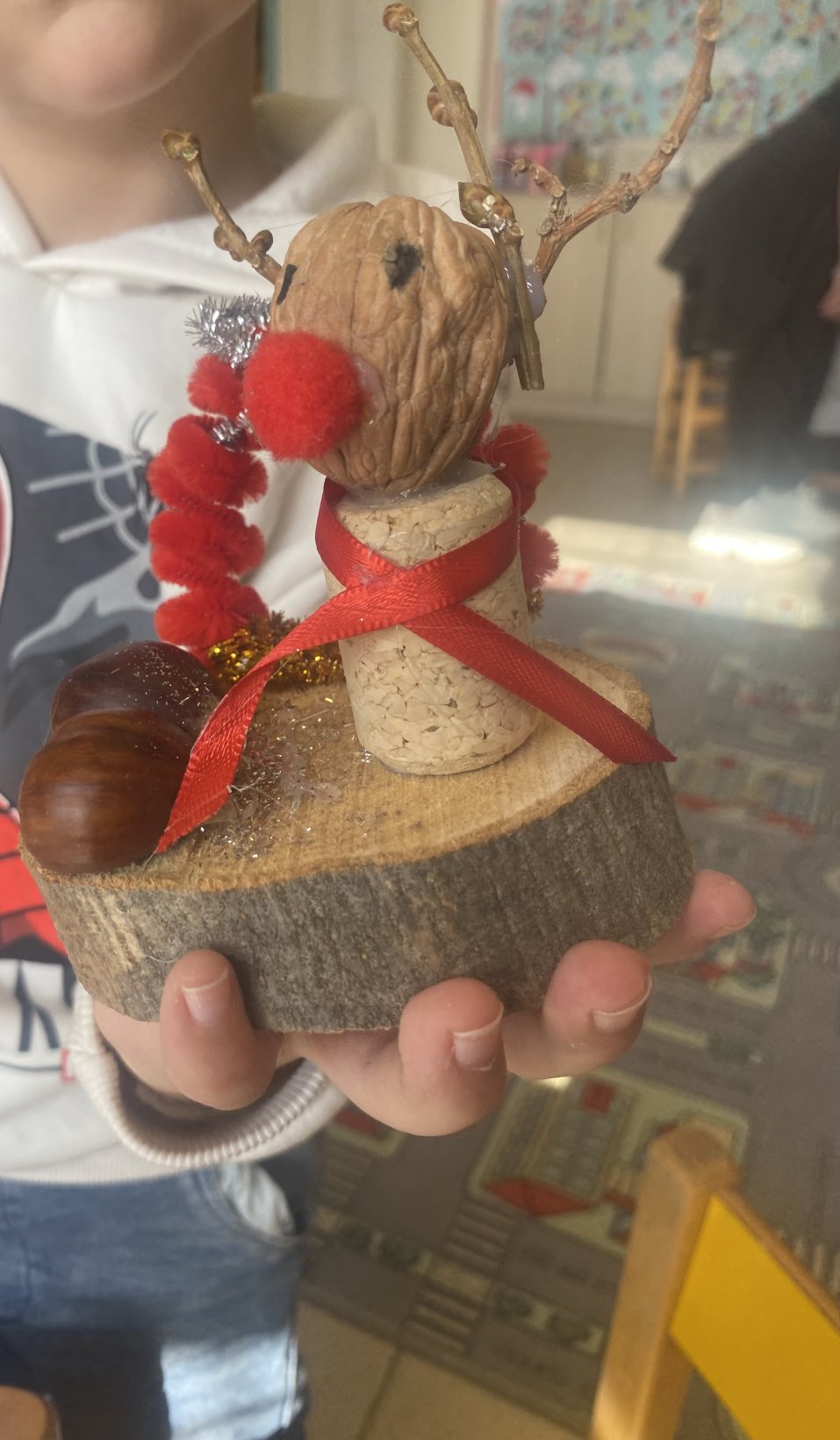 ,δίνοντας ιδιαίτερη σημασία στην επαναχρησιμοποίηση χαρτιού για την προστασία των δασών.Τα παιδιά κατασκεύασαν έλατα με χάρτινες αβγοθήκες και χαρτόκουτες,αλλά και κάρτες με έλατα με χαρτί από περιοδικά και χαρτόκουτα.Με τα στολίδια τους στόλισαν το χώρο του Νηπιαγωγείου ενώ στις κάρτες έγραψαν ευχές για καλές γιορτές.Νωρίτερα όμως