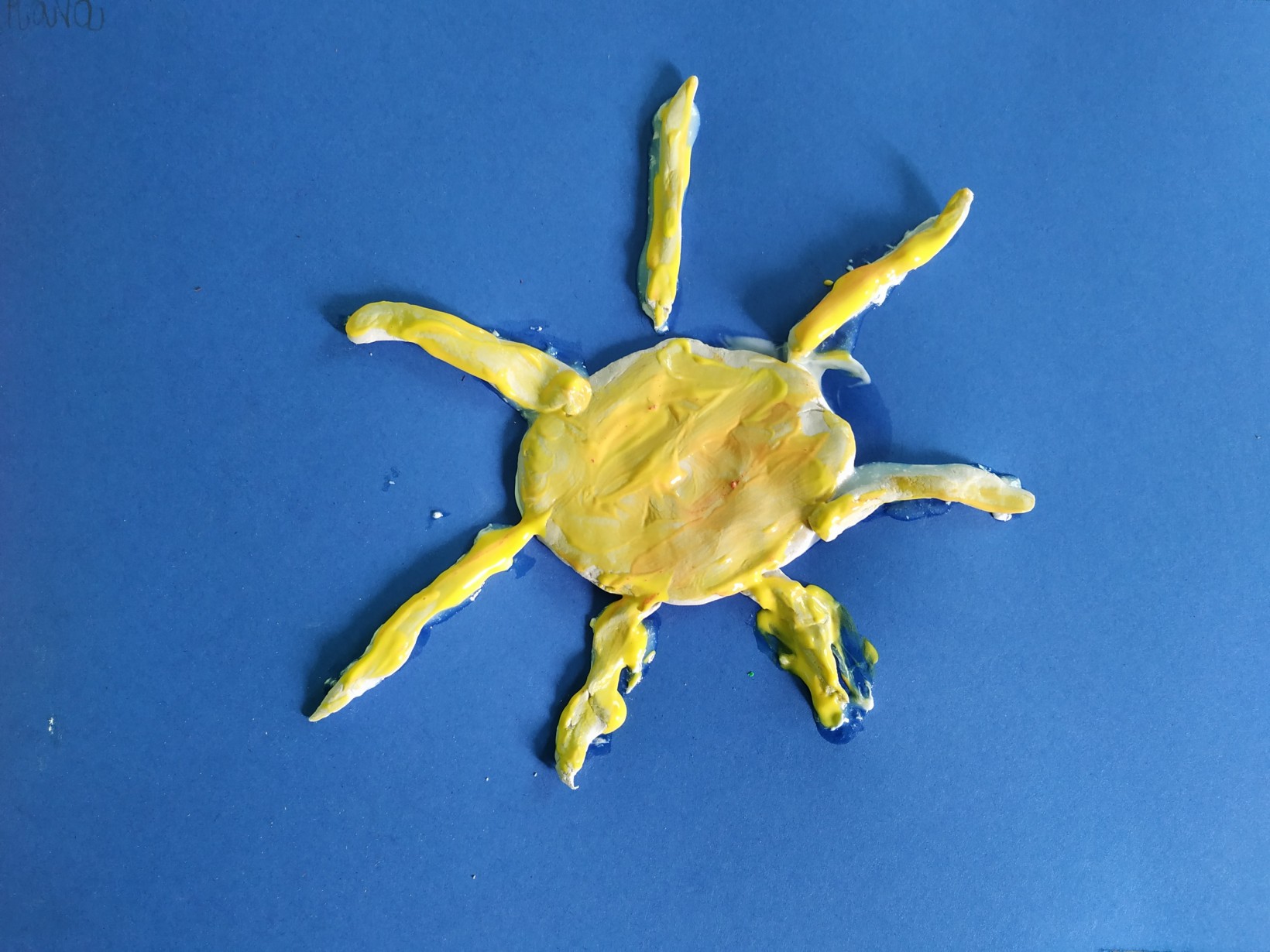 Τα νήπια κατασκεύασαν με πηλό έναν ήλιο και τον ζωγράφισαν με δακτυλομπογιές.