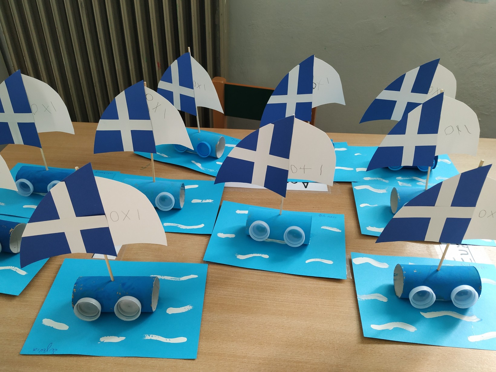 Τα νήπια κατασκεύασαν με ανακυκλώσιμα υλικά και χρωματιστά χαρτόνια το καραβάκι τους γράφοντας στα πανιά του τη λέξη ΟΧΙ
