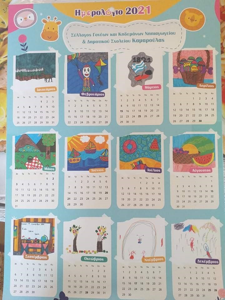 - Δημιουργία ημερολογίου έτους 2021, με έργα ζωγραφικής των μαθητών του Νηπιαγωγείου (και του Δημοτικού σχολείου Καμαρούλας)