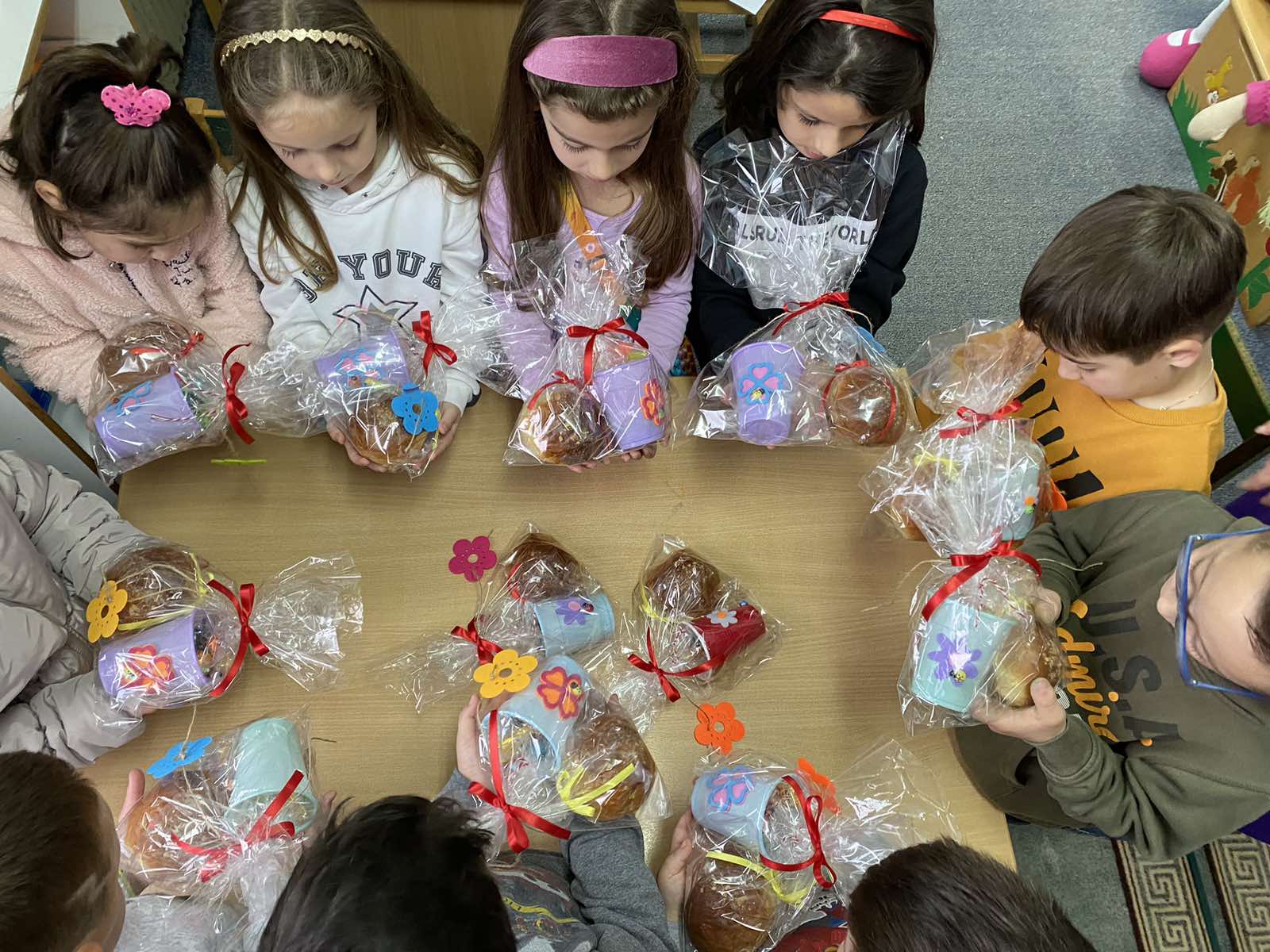 Στους μαθητές μας προσέφερε χειροποίητα βαζάκια με πασχαλινές λιχουδιές και γλαστράκια με όμορφα ανοιξιάτικα λουλούδια