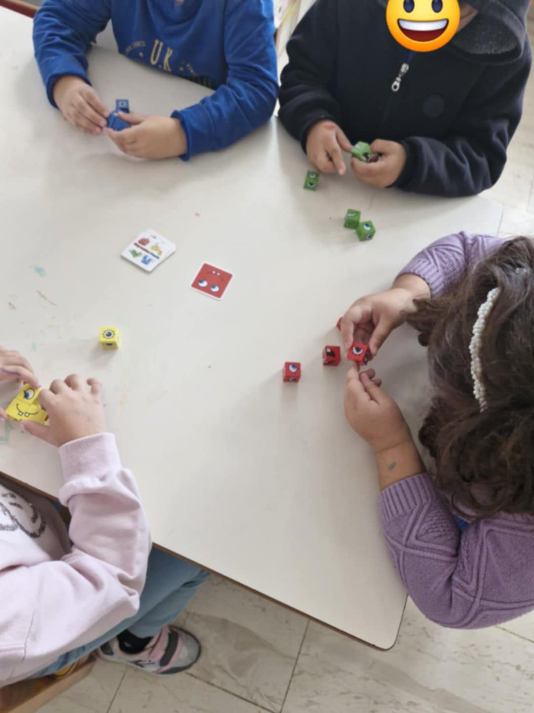 Παίξαμε παιχνίδια: 1) και κάθε παιδί προσπαθούσε να φτιάξει την εικόνα του συναισθήματος με τα κυβάκια