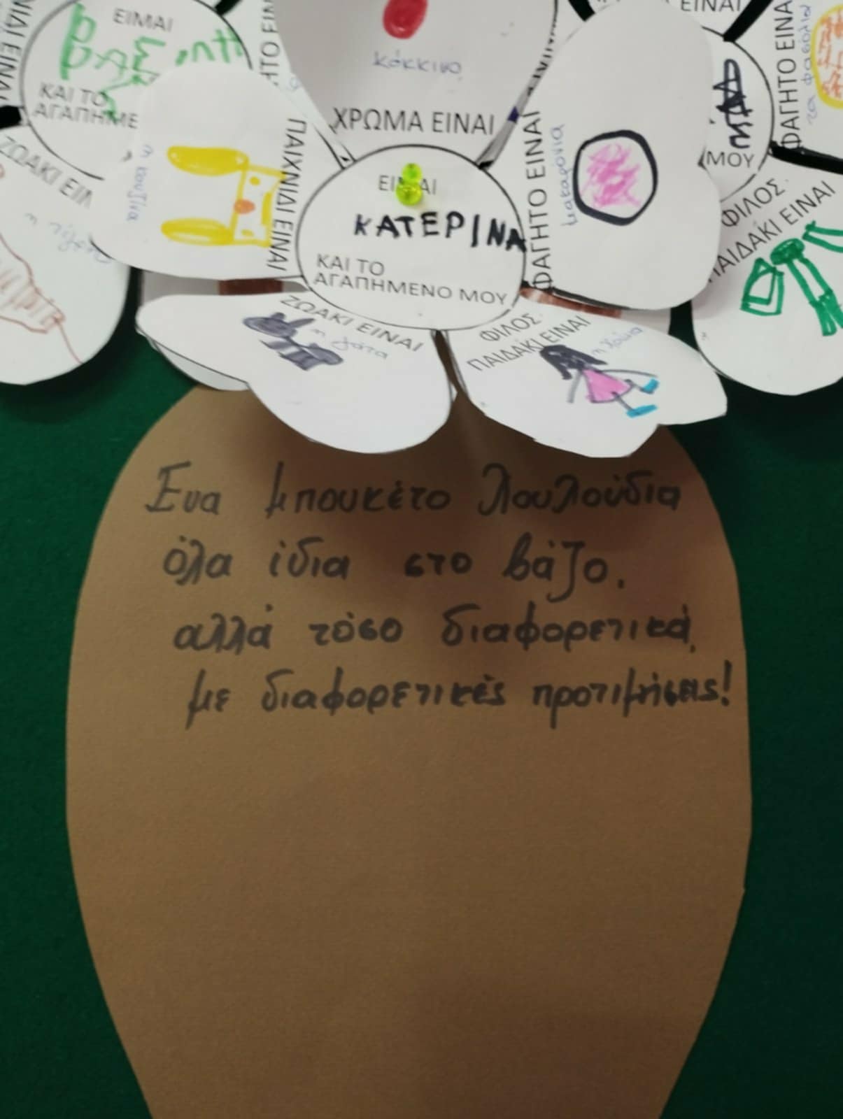 Σε αυτό το Εργαστήρι Δεξιοτήτων μας εργαστήκαμε πάνω στην ισότητα και στην αποδοχή του άλλου. Με έξυπνες ατομικές και ομαδικές εργασίες καταφέραμε να ενισχύσουμε το δημοκρατικό επίπεδο της τάξης, να κάνουμε φιλίες, ν αυξήσουμε την αλληλεγγύη και την αλληλοβοήθεια!