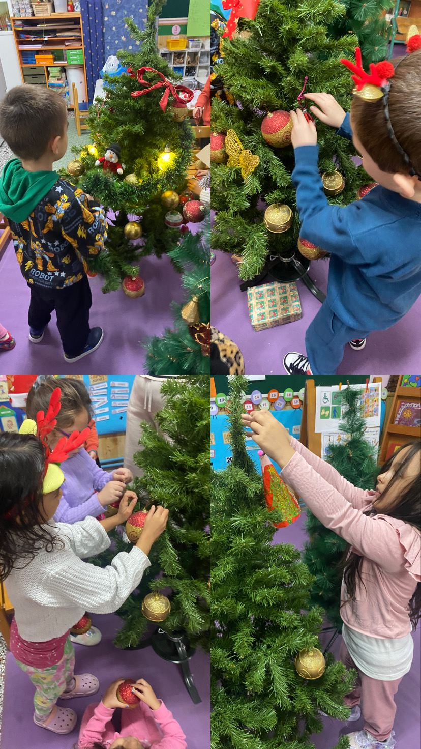 Με ενθουσιασμό και προσοχή, τα παιδιά στόλισαν το χριστουγεννιάτικο δέντρο της τάξης. Κάθε στολίδι τοποθετήθηκε με χαμόγελο και περηφάνια, ενώ το αστέρι στην κορυφή μπήκε με τη βοήθεια των παιδιών, σηματοδοτώντας την έναρξη της γιορτινής μας περιόδου. Η δραστηριότητα αυτή ενίσχυσε τη συνεργασία, την υπευθυνότητα και τη χαρά της κοινής δημιουργίας.