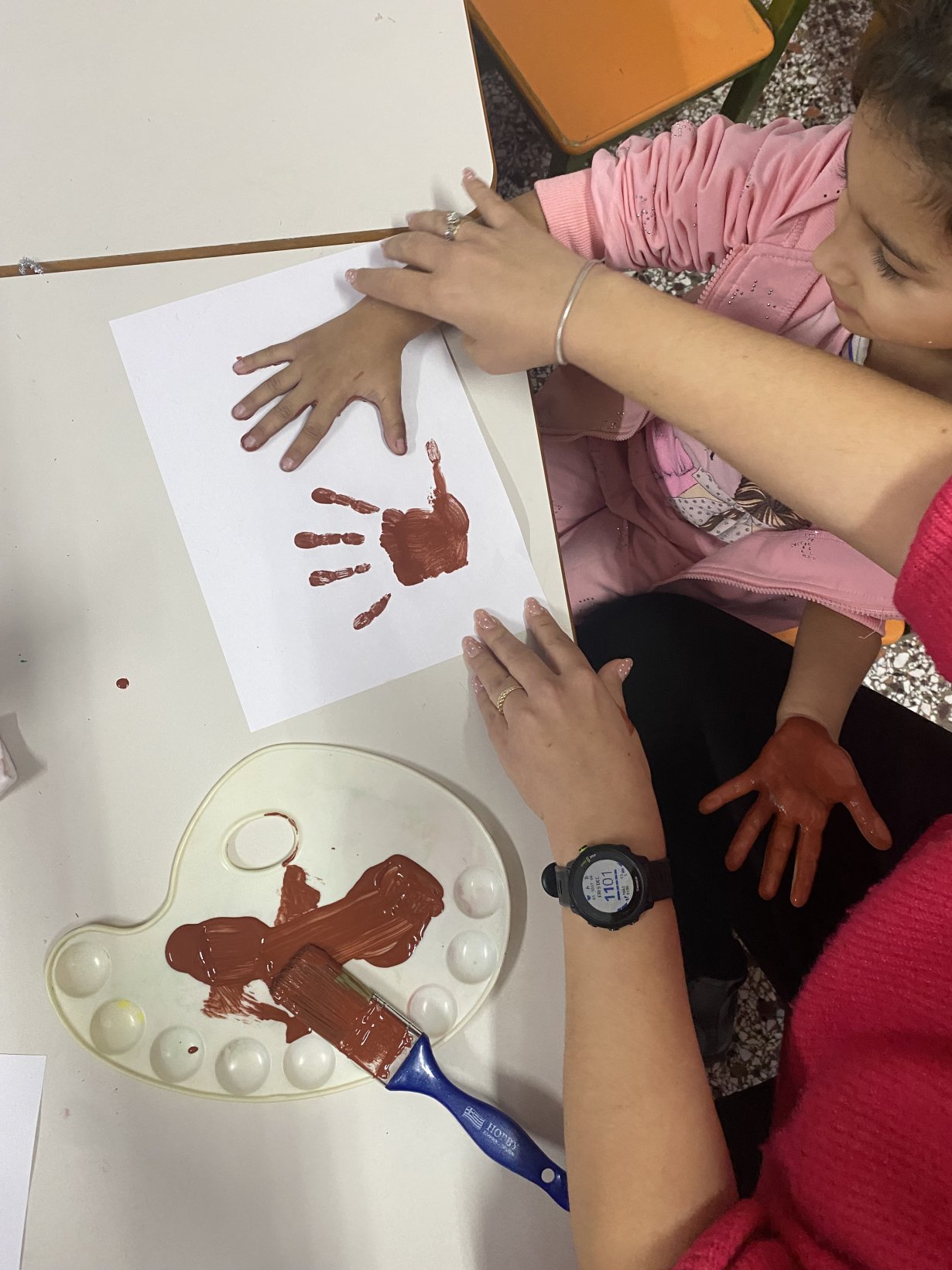 Οι μικροί μας καλλιτέχνες συμμετείχαν σε εικαστικές δραστηριότητες με θέμα τα Χριστούγεννα. Χρησιμοποιώντας τα χέρια τους και χρώματα, αποτύπωσαν αποτυπώματα, δημιουργώντας χριστουγεννιάτικες κατασκευές γεμάτες φαντασία. Μέσα από αυτή τη διαδικασία καλλιεργήθηκαν η λεπτής κινητικότητα, η αισθητηριακή εμπειρία και η ελεύθερη έκφραση.