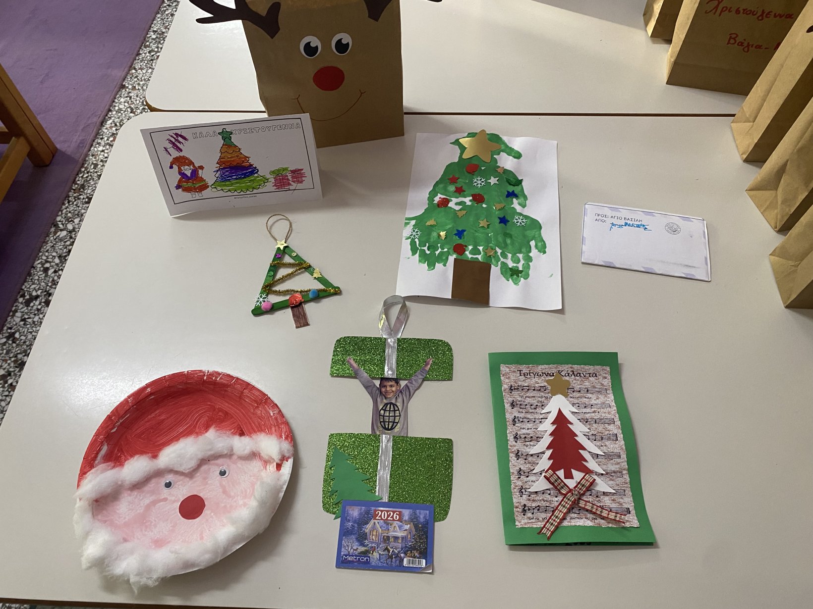 Μέσα στο γιορτινό κλίμα των ημερών, τα παιδιά ετοίμασαν τα δικά τους μικρά δωράκια, γεμάτα φροντίδα και δημιουργικότητα. Σε αυτά περιλαμβάνονται κατασκευές που ετοιμάσαμε όλοι μαζί στην τάξη, καθώς και χειροτεχνίες φτιαγμένες με τα χεράκια τους.