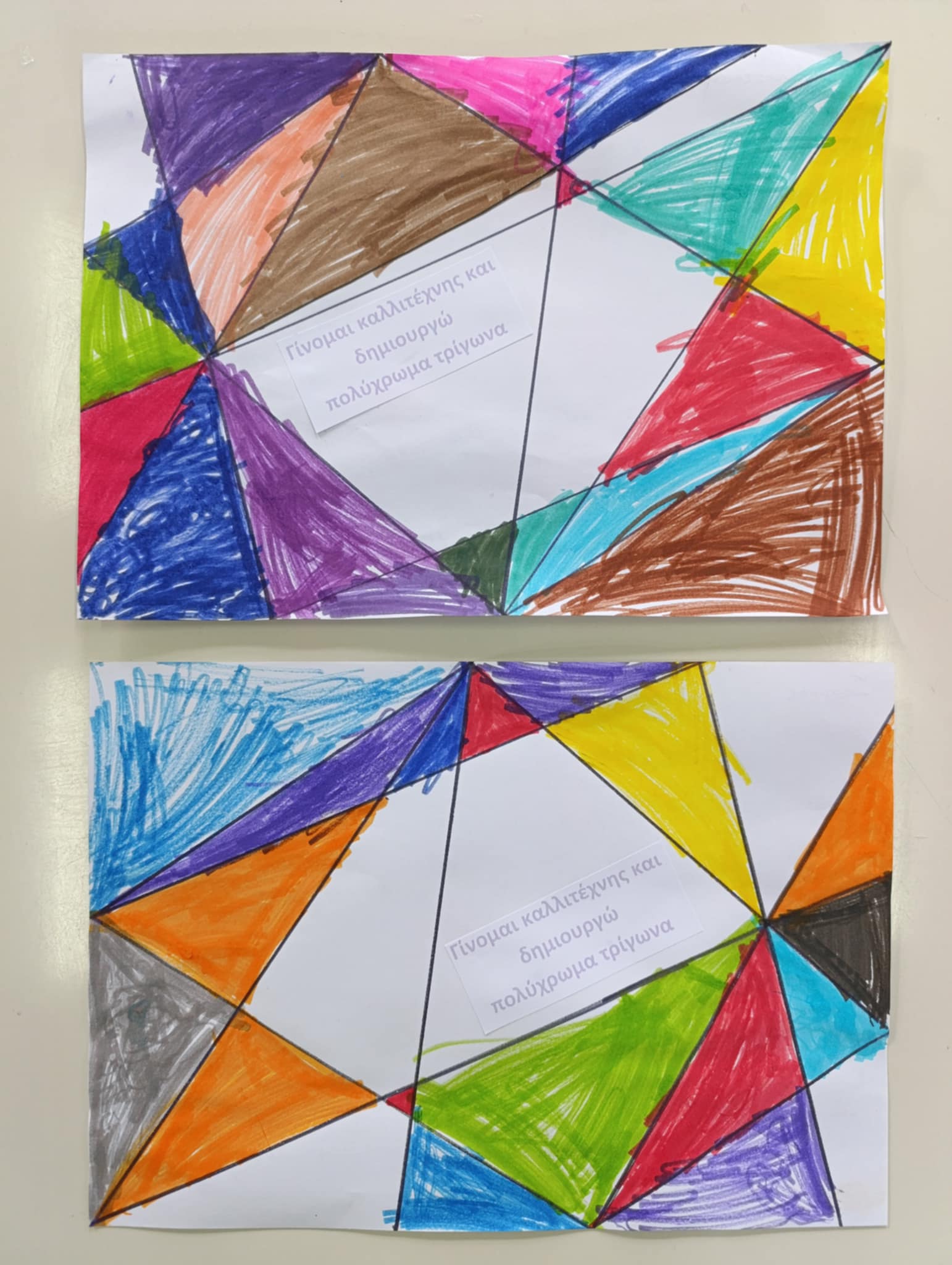 Φτιάξαμε κι εμείς διάφορα τρίγωνα και τα περπατήσαμε, τα σχεδιάσαμε, τα φτιάξαμε με πλαστελίνη.
