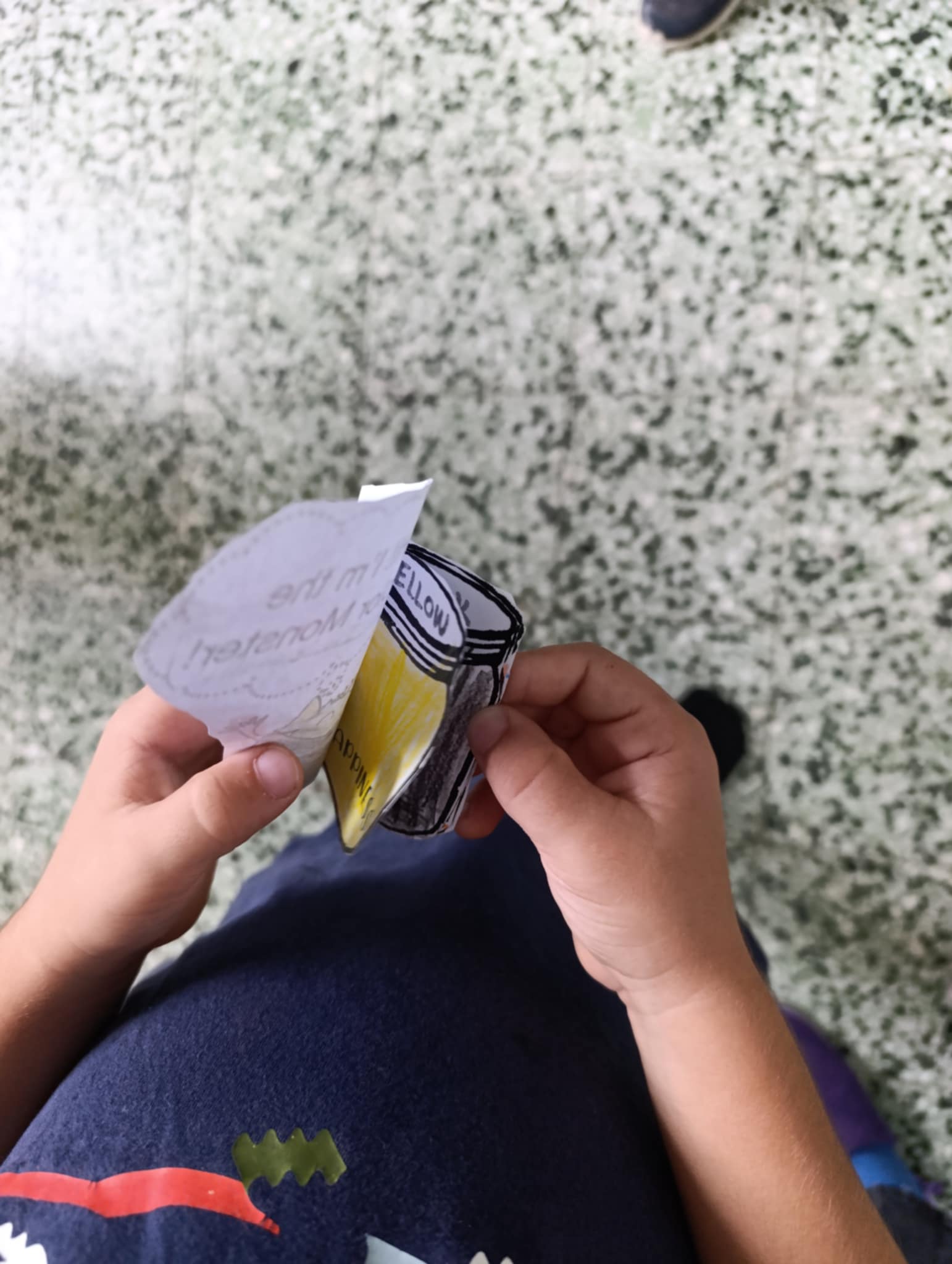 Με οδηγό το Color Monster, γνώρισαν βασικά χρώματα στα Αγγλικά και τα συνέδεσαν με διαφορετικά συναισθήματα, μέσα από τραγούδια, παιχνίδια, κατασκευές και αφήγηση.