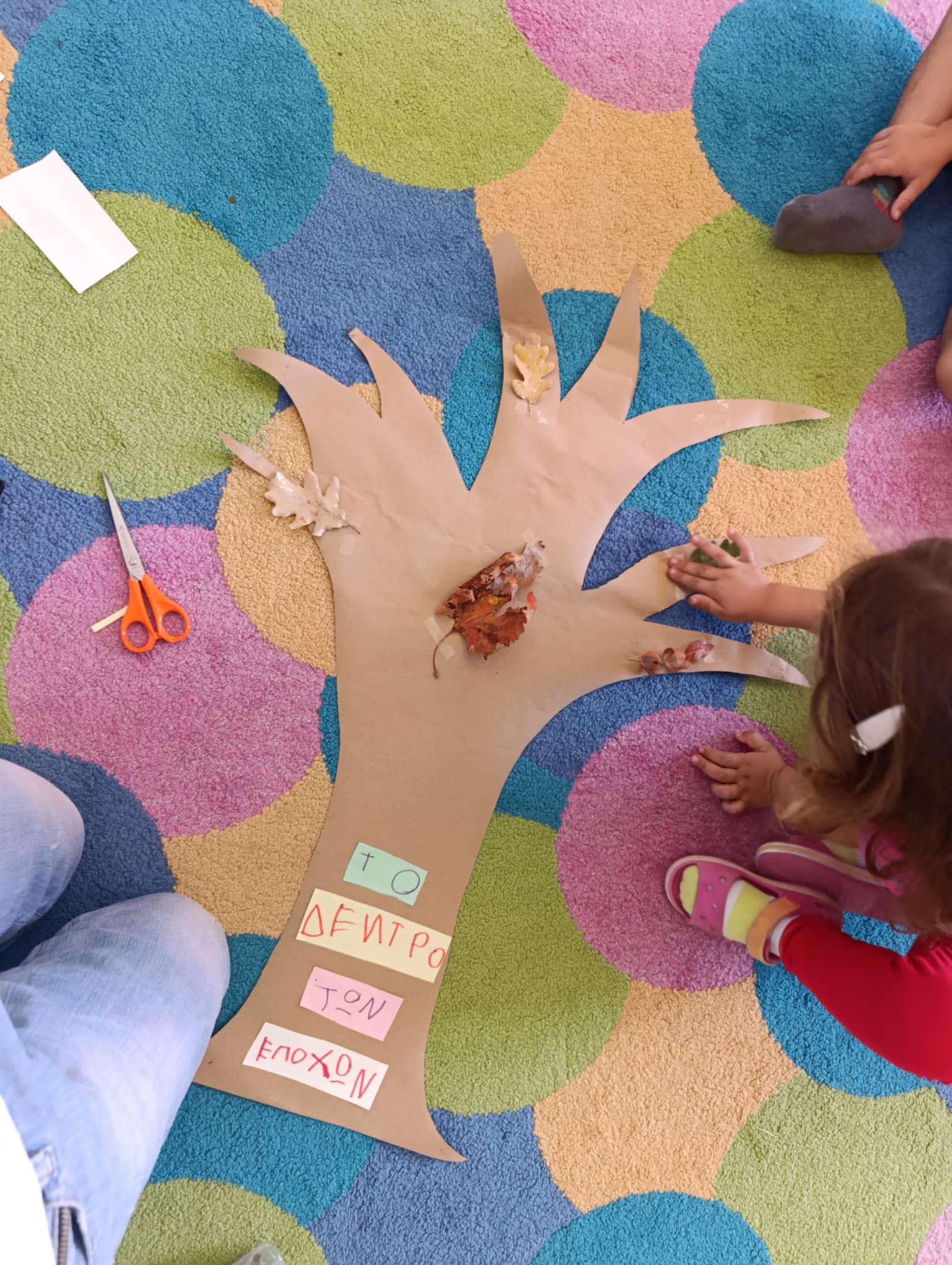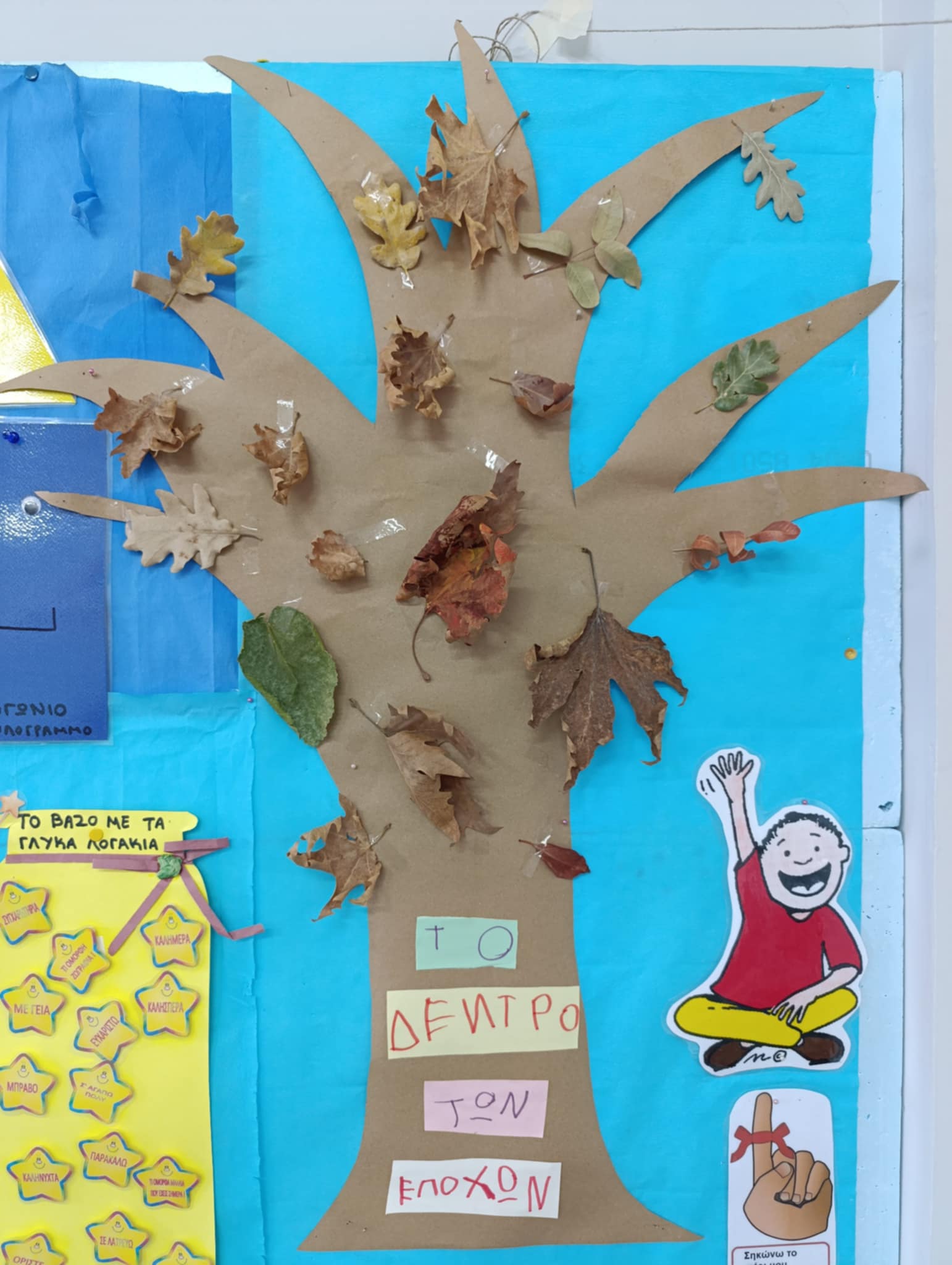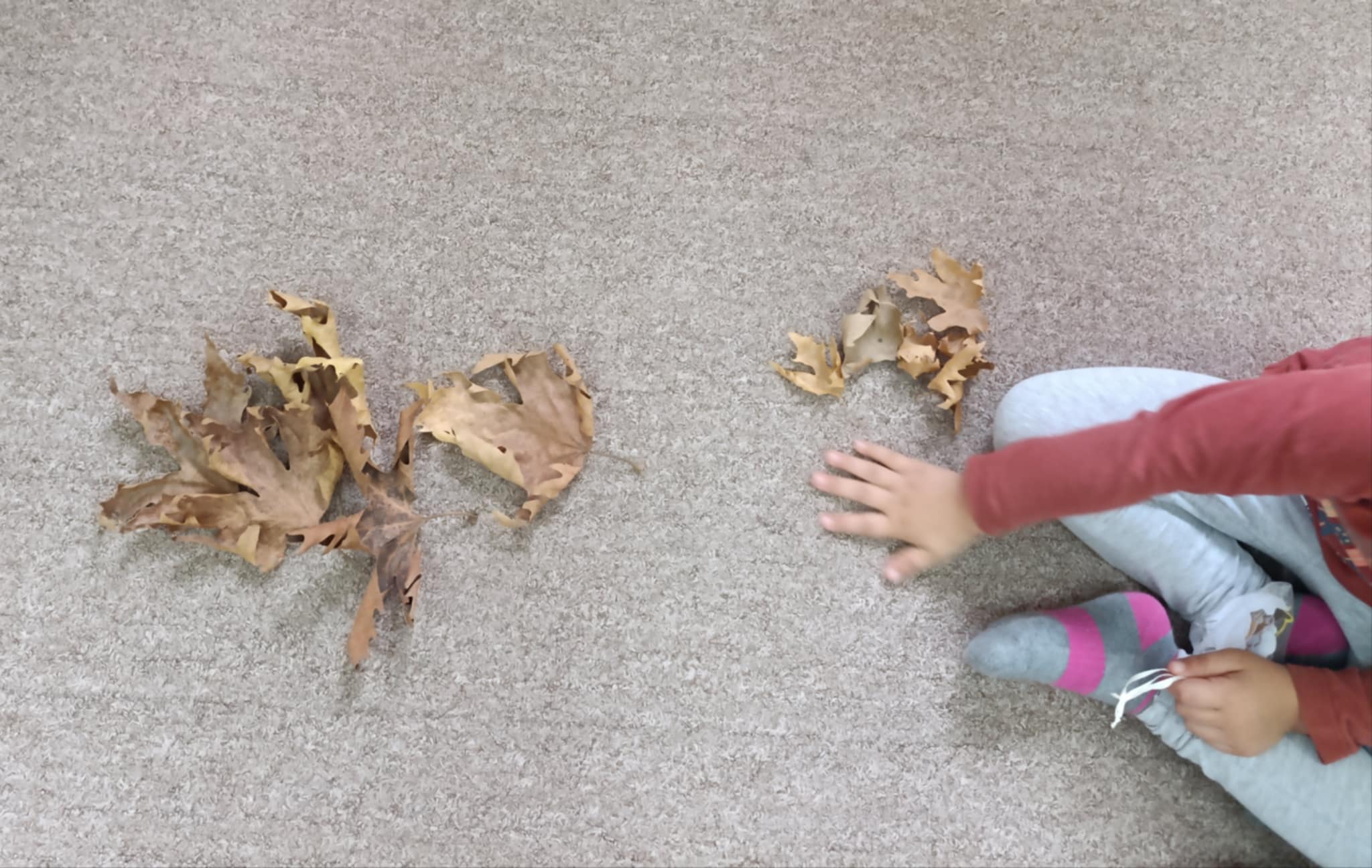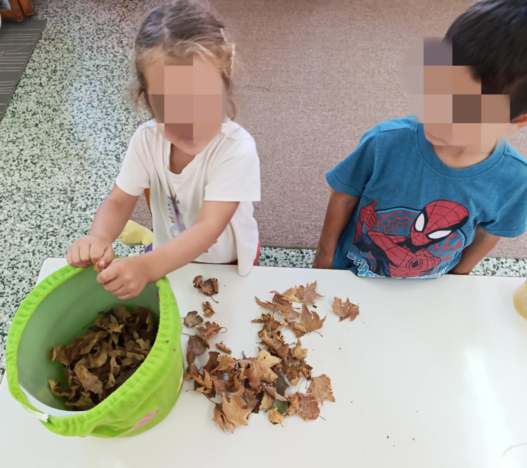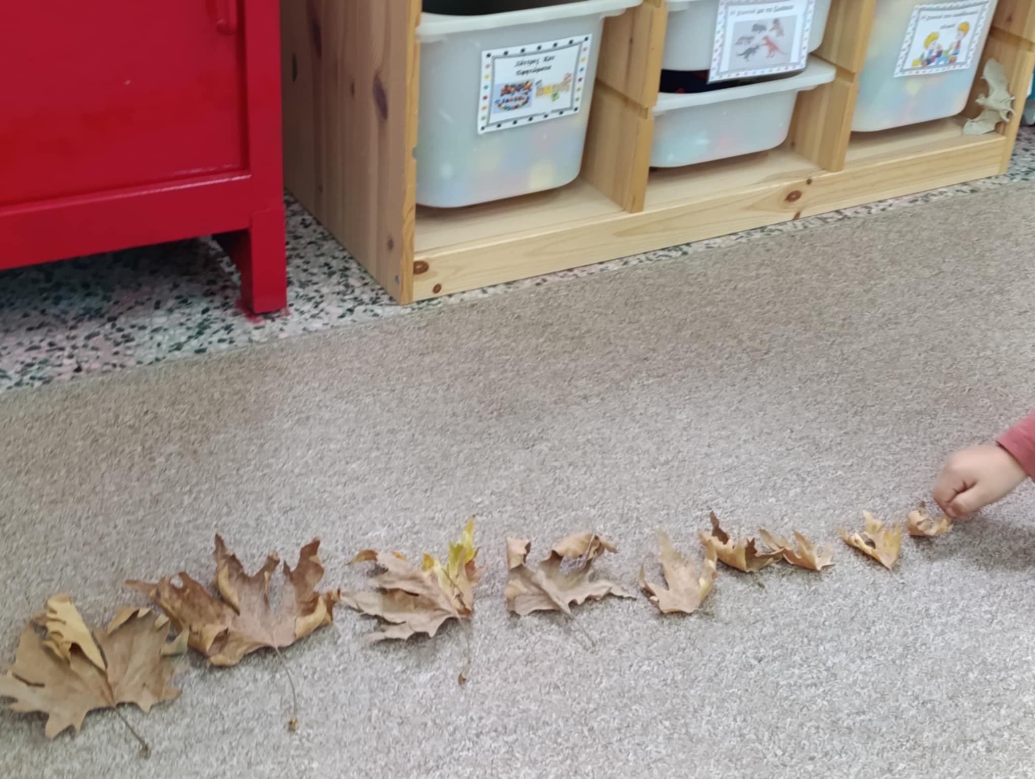 Φέραμε στο σχολείο φθινοπωρινά φύλλα και τα παρατηρήσαμε, τα ταξινομήσαμε ανάλογα με τα χρώματα τους, δημιουργήσαμε με αυτά μοτίβο, τα χωρίσαμε ανάλογα με το μέγεθός τους