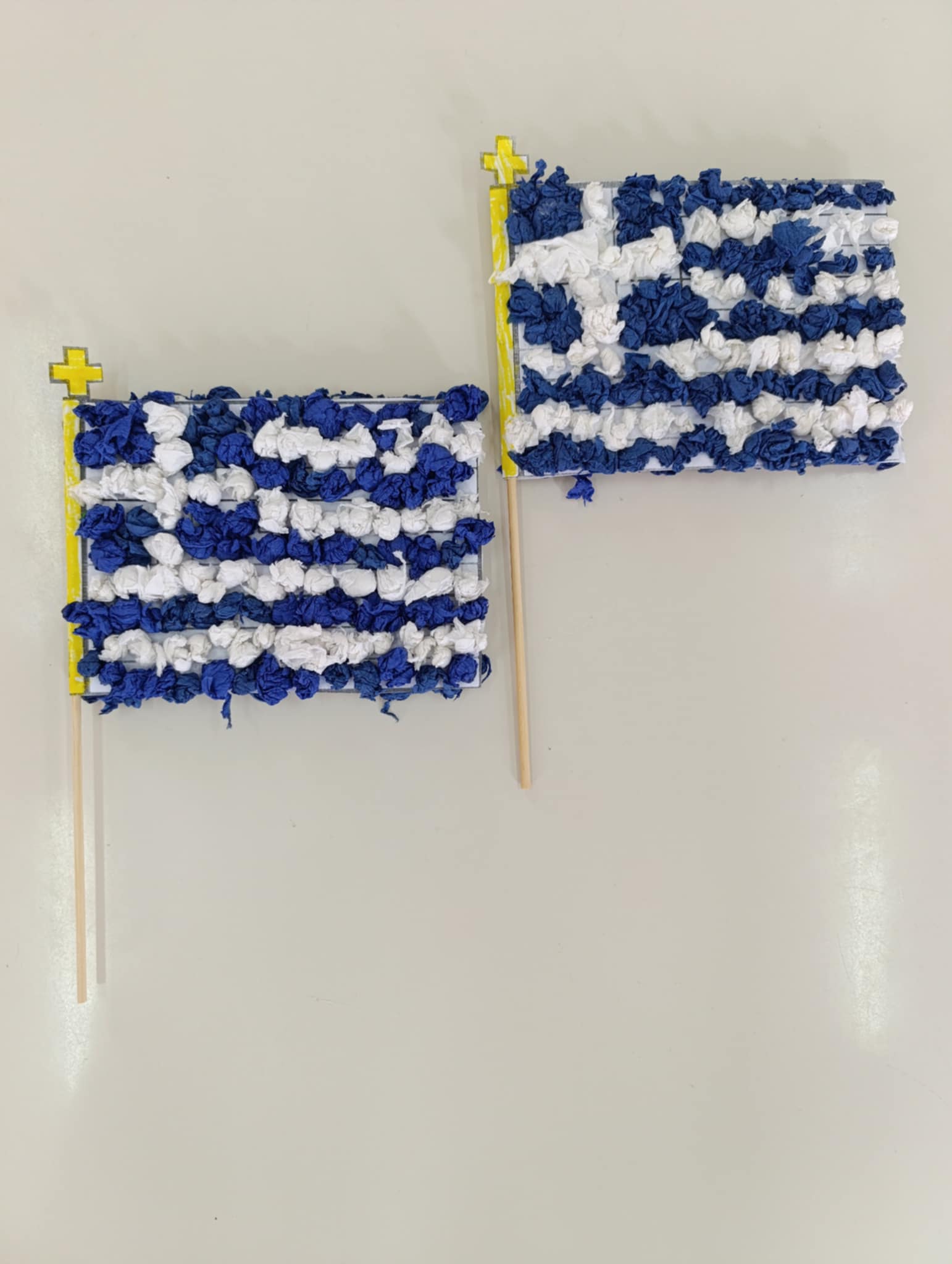Γνωρίσαμε το συμβολισμό της Ελληνικής σημαίας και ετοιμάσαμε τις δικές μας σημαιούλες με γκοφρέ.