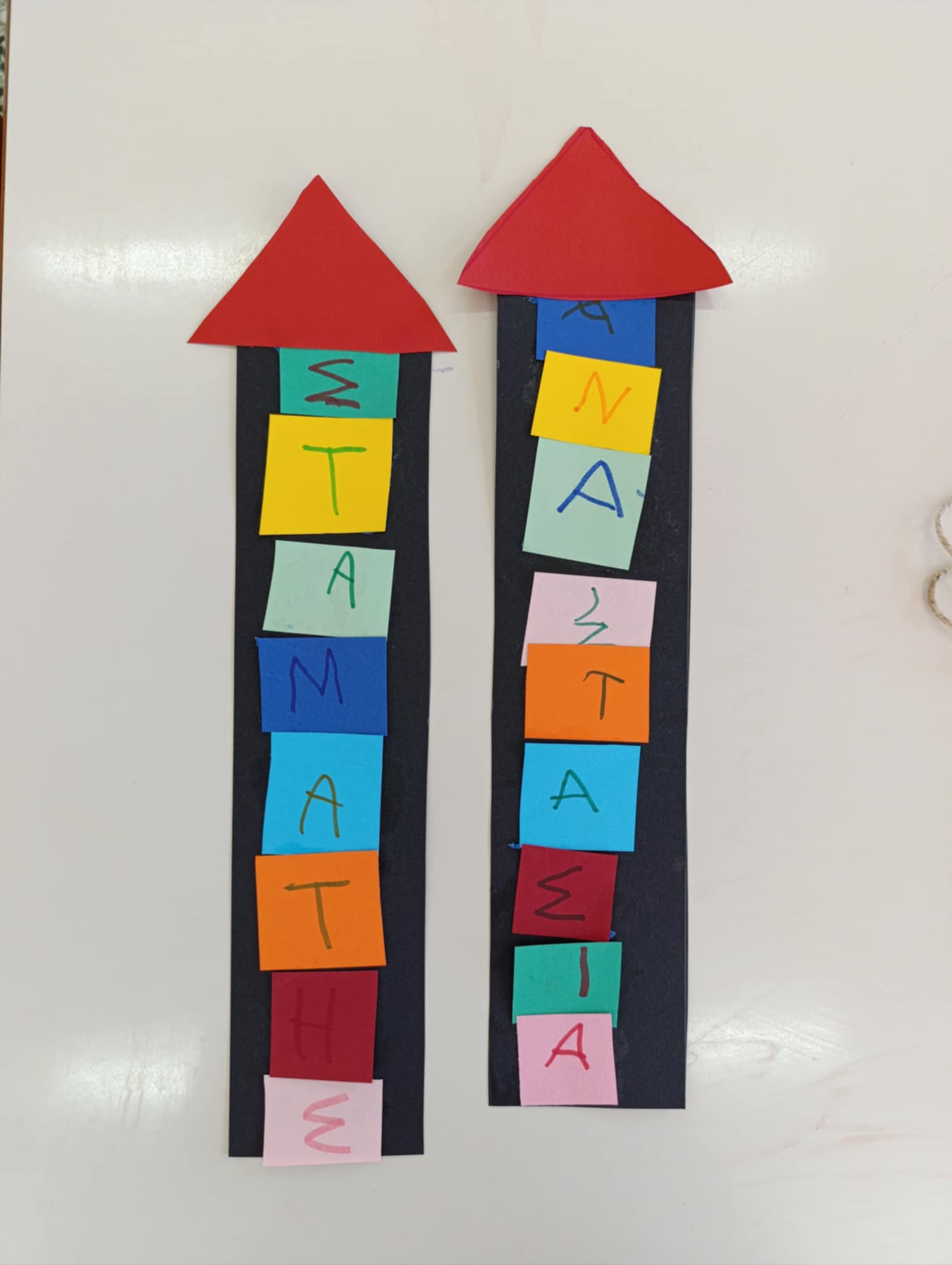 Μετρήσαμε πόσα είναι τα γράμματα μας, χτίσαμε πύργους με τόσα τουβλάκια όσα και τα γράμματα του ονόματός μας και τους συγκρίναμε, κατασκευάσαμε τα σπιτάκια μας με τόσους ορόφους όσα και τα γράμματα του καθενός.