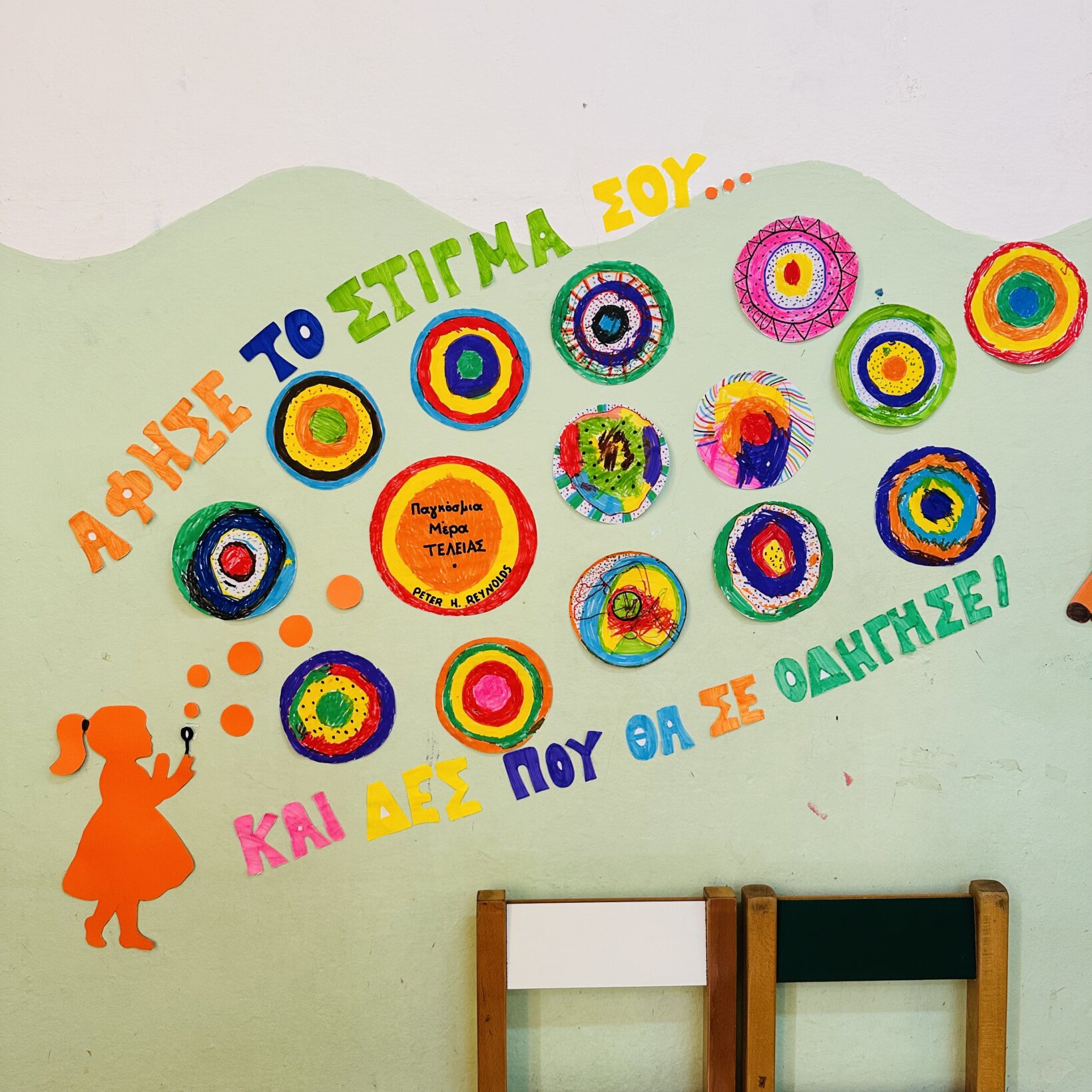 Η Παγκόσμια Μέρα της Τελείας, ξεκίνησε όταν ο δάσκαλος Τerry Shay παρουσίασε στην τάξη του το βιβλίο “The dot” του Peter H. Reynolds στις 15 Σεπτεμβρίου το 2009. Το “the Dot” είναι η ιστορία μιας δασκάλας που προκαλεί μια αμφισβητήσιμη μαθήτρια να εμπιστευτεί τις ικανότητές της για να “αφήσει το σημάδι της”. Αυτό που ξεκινάει με μια κουκκίδα σε ένα κομμάτι χαρτί γίνεται μια σημαντική ανακάλυψη εμπιστοσύνης, η οποία έχει εμπνεύσει αμέτρητα παιδιά και ενήλικες σε όλον τον κόσμο. Για να γιορτάσουμε και εμείς αυτήν την μέρα και να ξεπεράσουμε κάθε εμπόδιο της τάξης και κάθε αμφισβήτηση των πρώτων ημερών στο σχολείο ζητήσαμε από τους μαθητές να δημιουργήσει ο καθένας το δικό του έργο που μοιάζει με τελεία. Αφού το κάθε παιδί έφτιαξε το δικό του σημάδι, δημιουργήσαμε αυτό το ομαδικό έργο. Ημέρα Δημιουργικότητας, Θάρρους και Συνεργασίας!