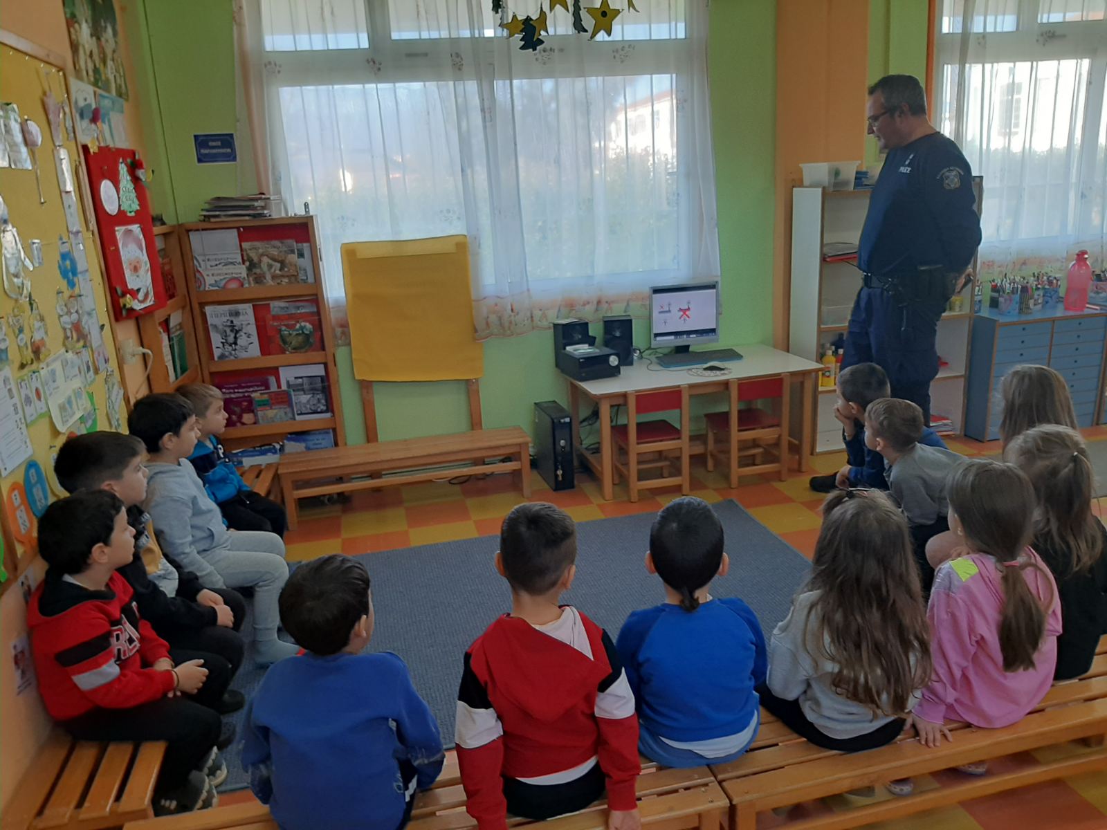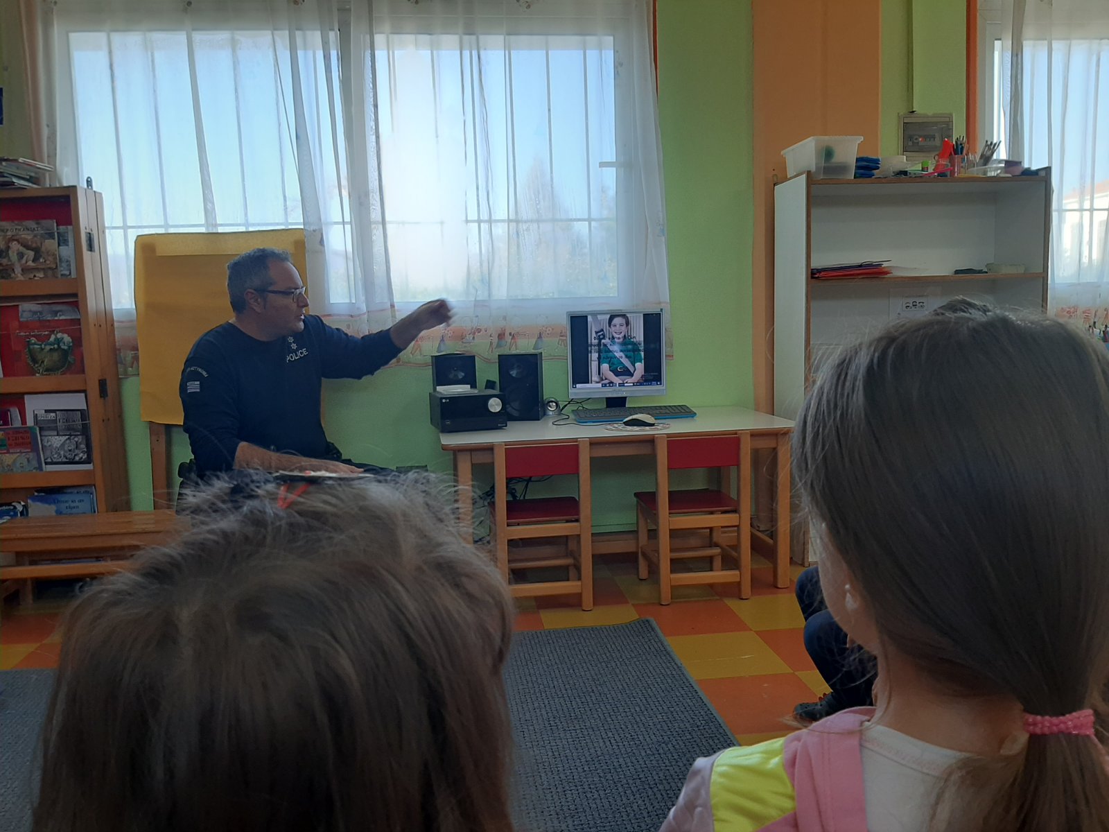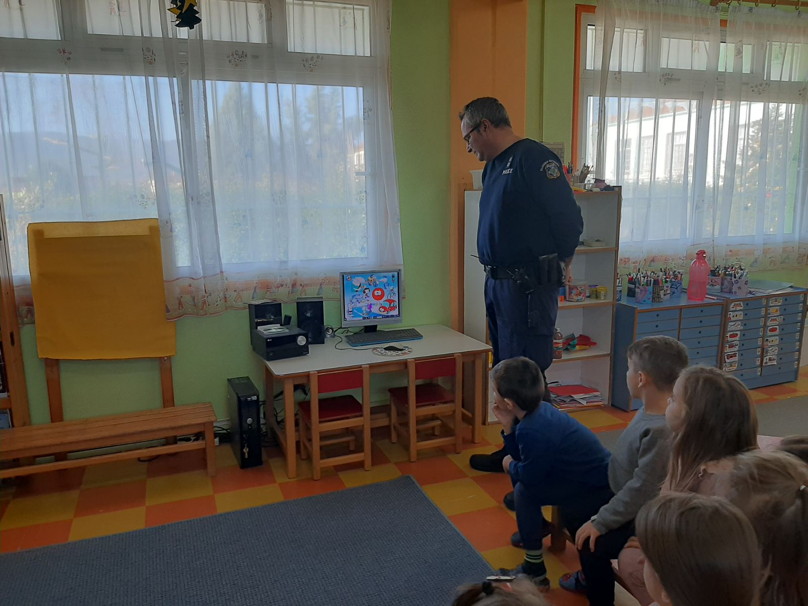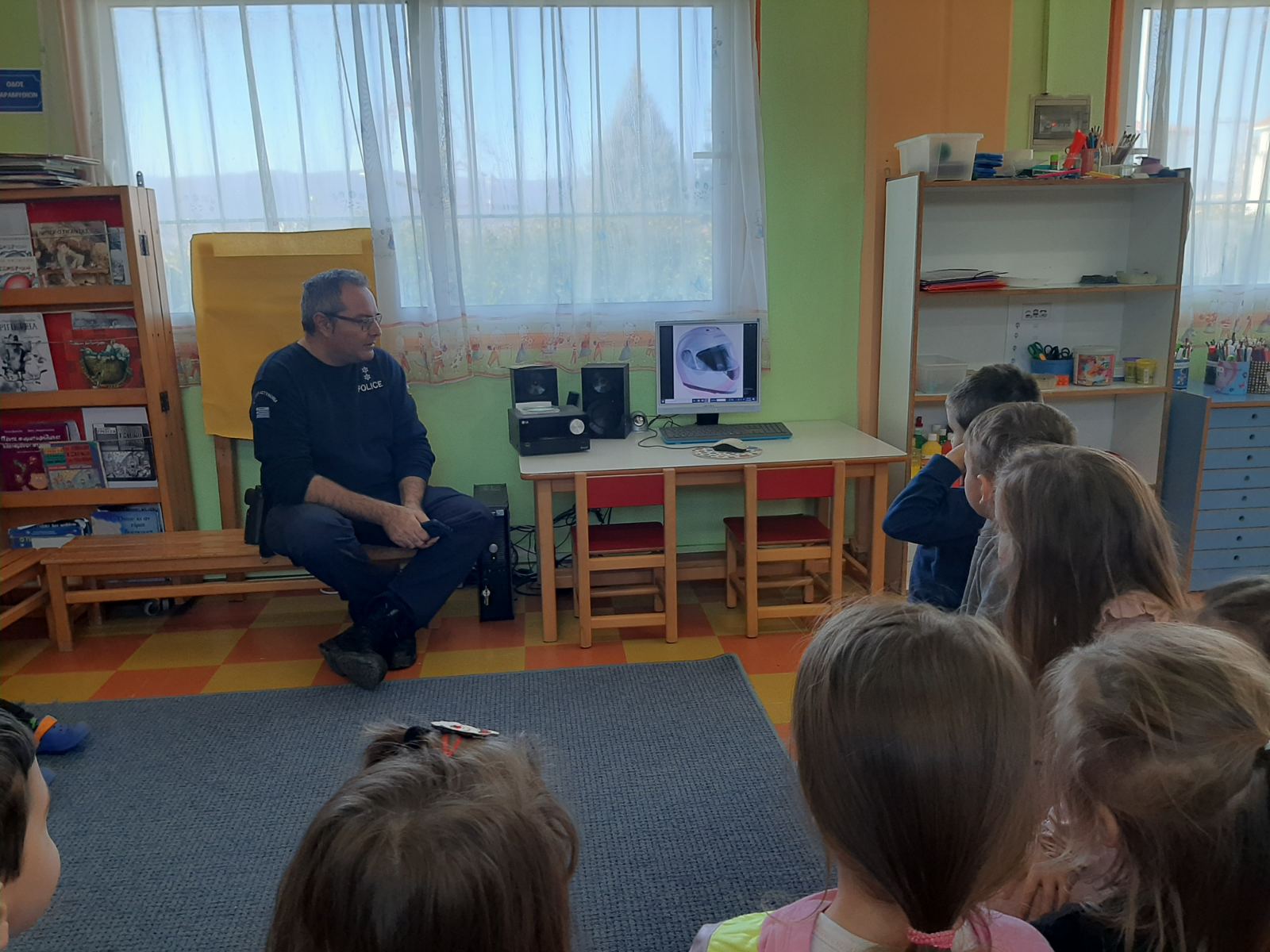 Επίσκεψη της Τροχαίας Λητής στο Νηπιαγωγείο μας. Εδειξε στα παιδιά εκπαιδευτικά video και συνομίλησε μαζί τους