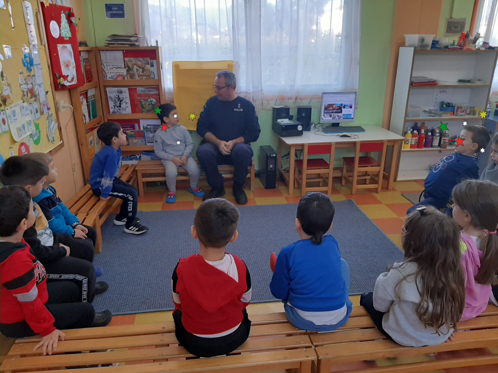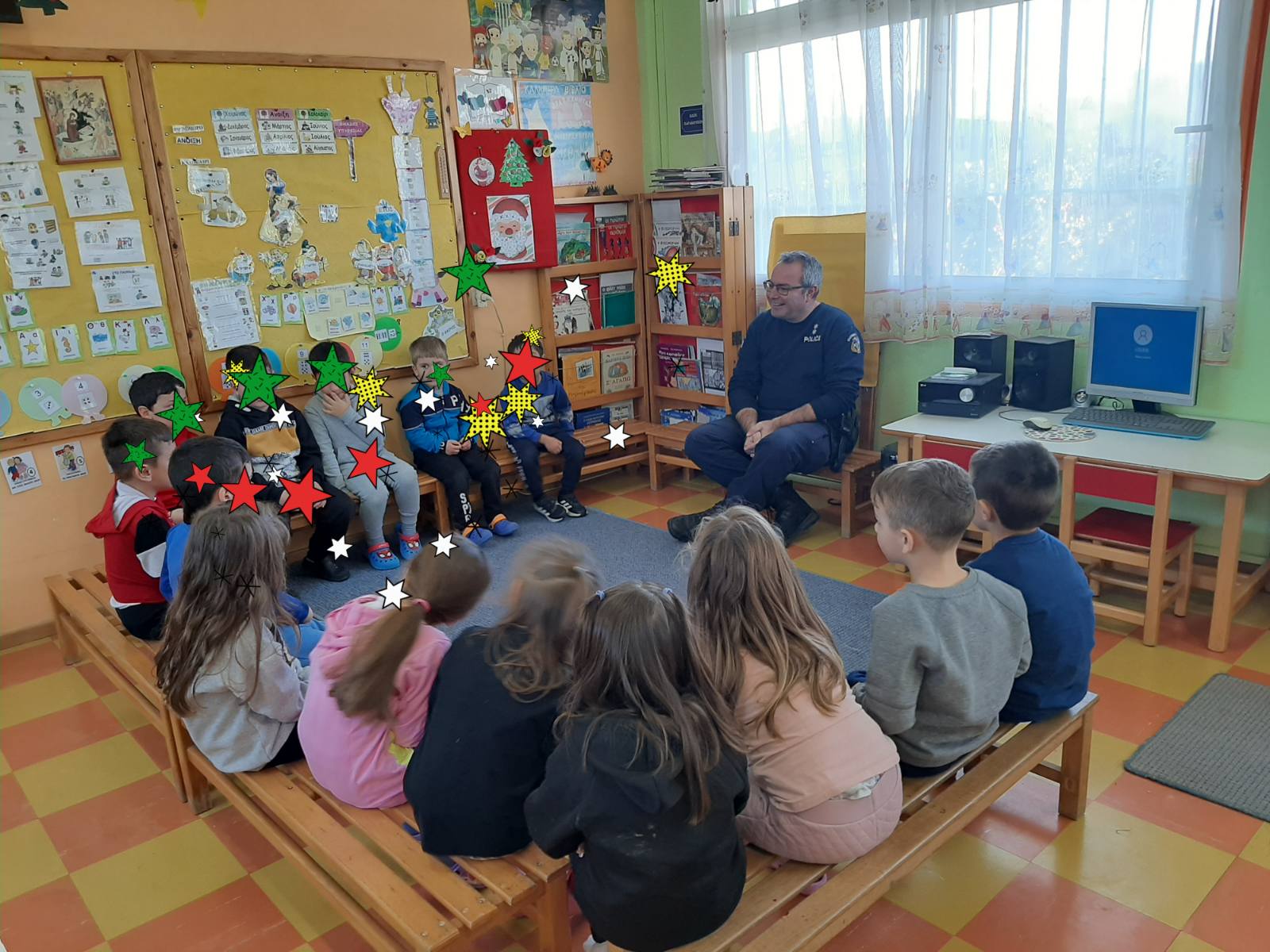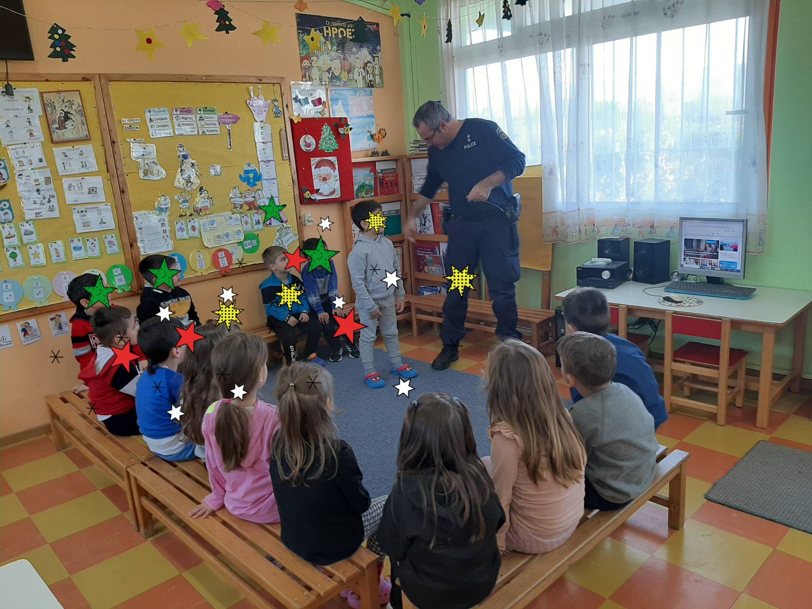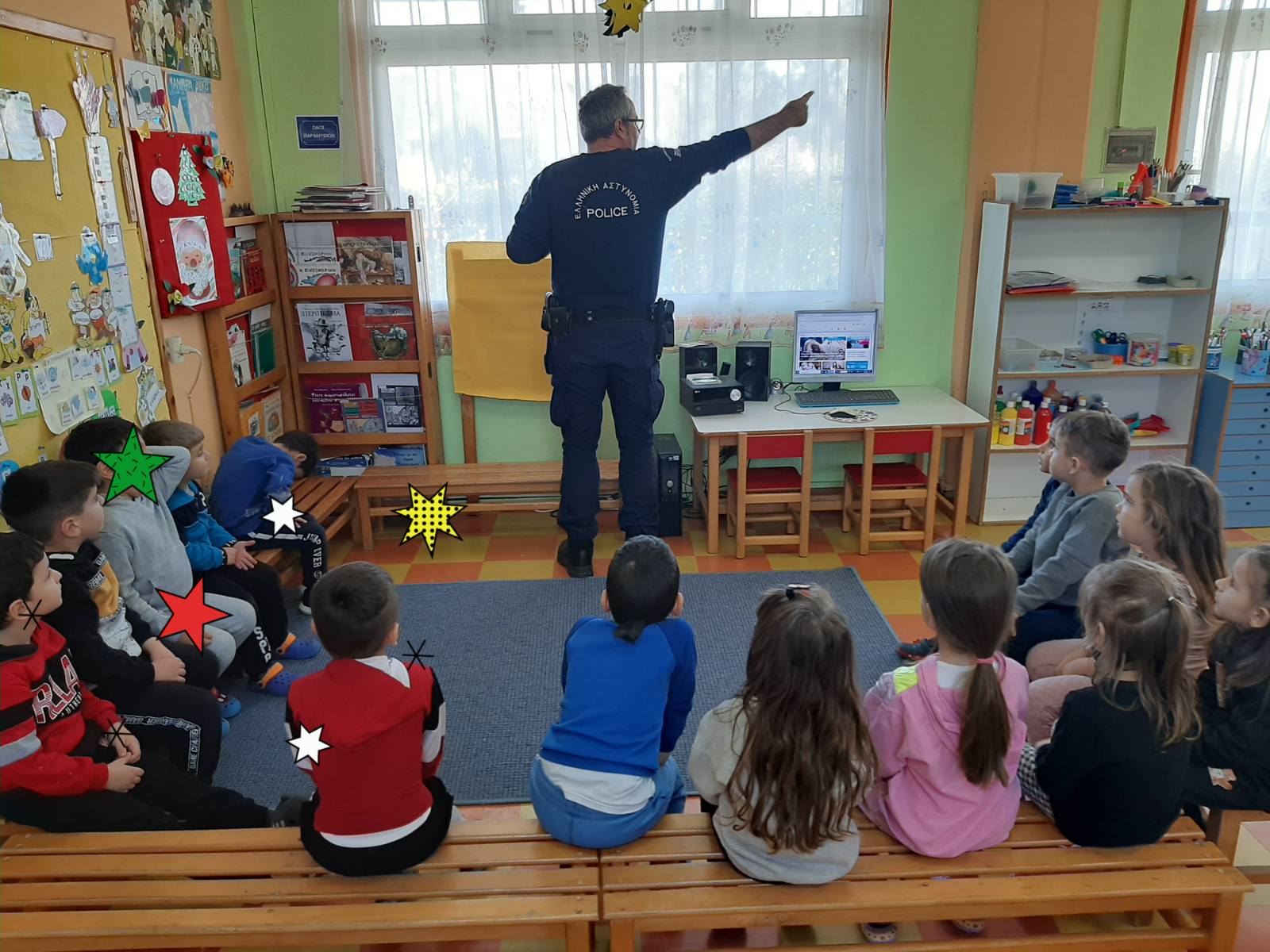 Επίσκεψη της Τροχαίας Λητής στο Νηπιαγωγείο μας. Εδειξε στα παιδιά εκπαιδευτικά video και συνομίλησε μαζί τους