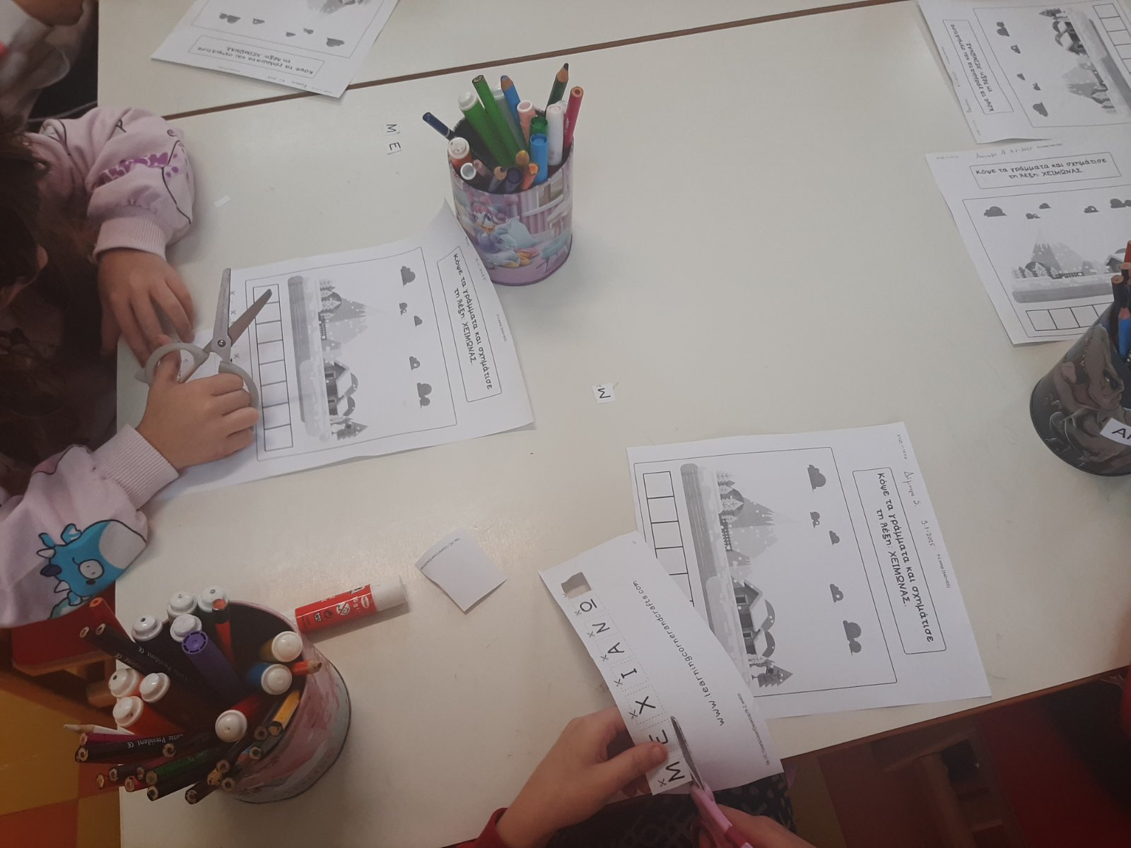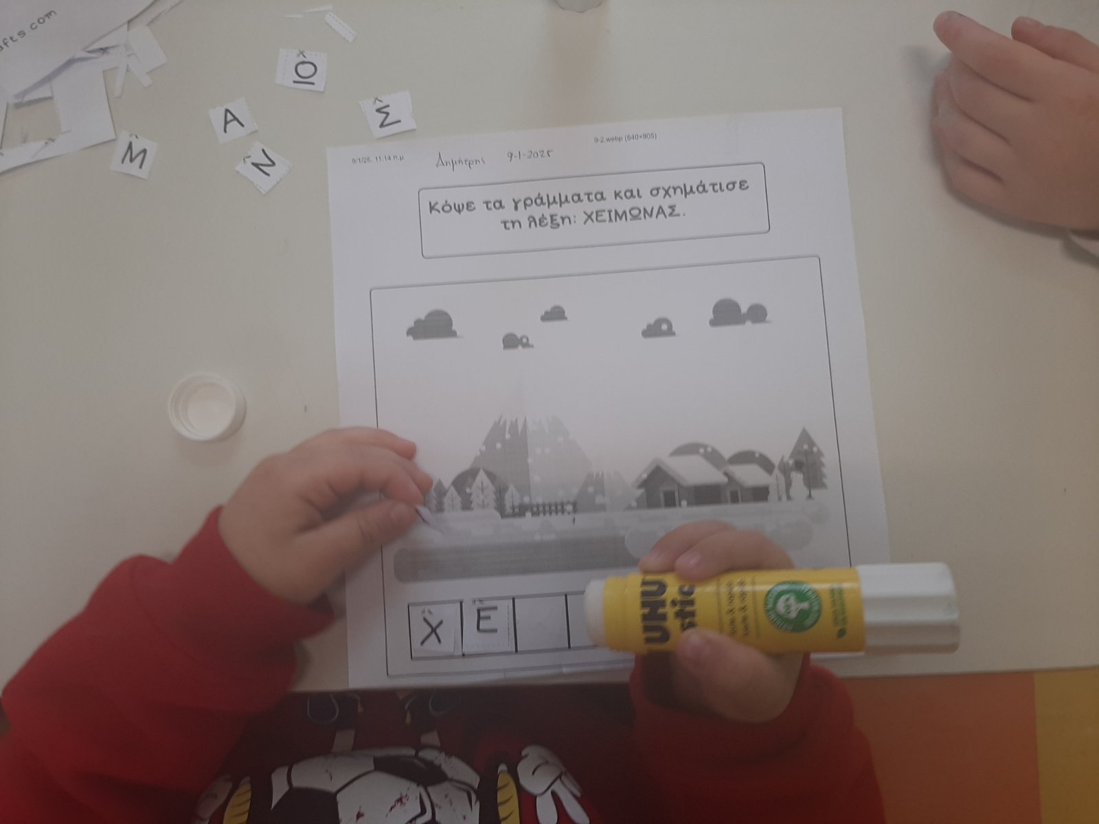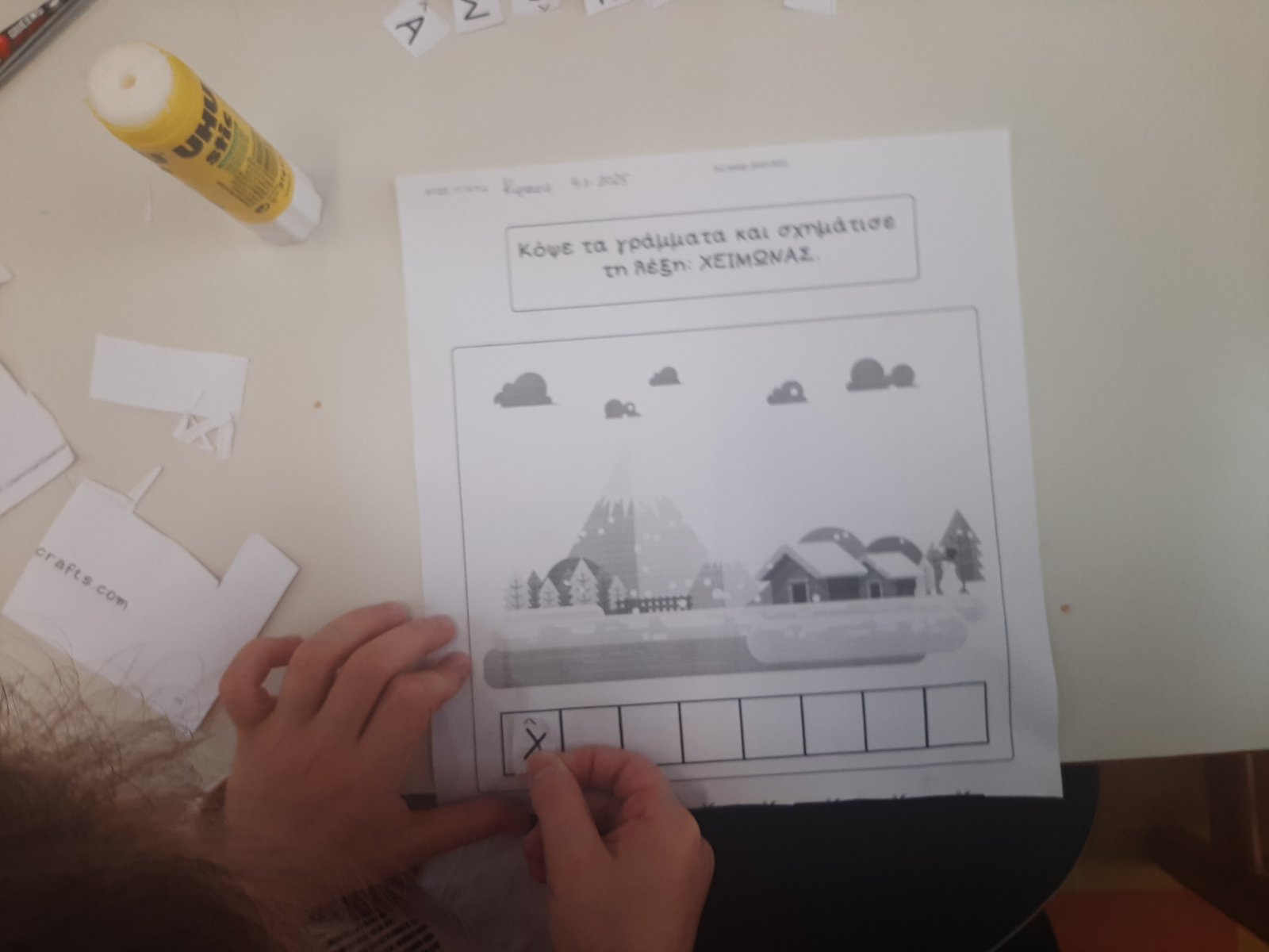 ΧΕΙΜΩΝΑΣ:Συνθέτουμε τη λέξη χειμώνας κόβοντας και κολλώντας τα γραμματα και φύλλο εργασίας στα Μαθηματικά