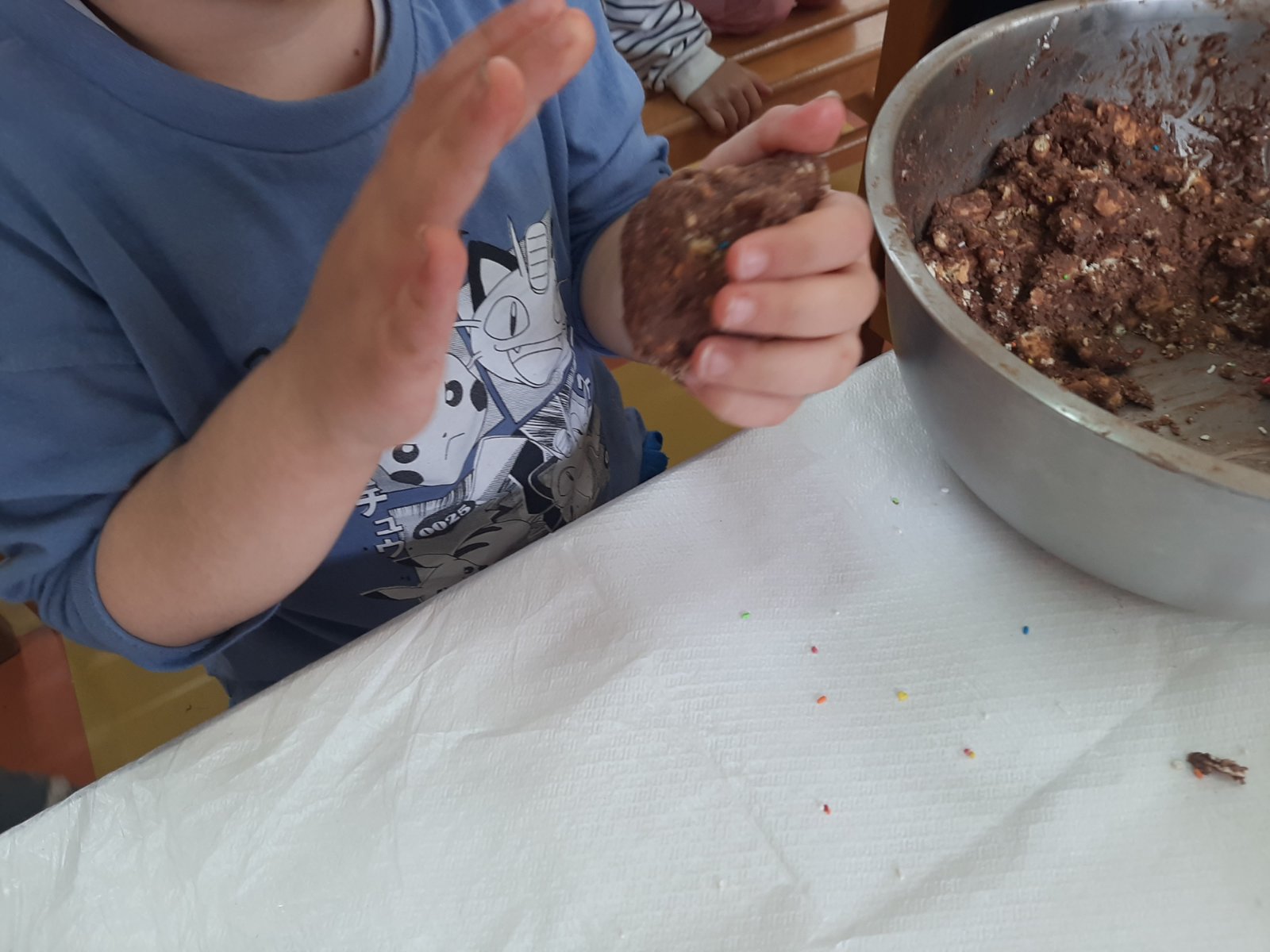 ΖΑΧΑΡΟΠΛΑΣΤΙΚΗ ΣΤΟ ΝΗΠΙΑΓΩΓΕΊΟ – ΣΟΚΟΛΑΤΕΝΙΑ ΑΒΓΑ: Σήμερα στο νηπιαγωγείο ζήσαμε μια γλυκιά πασχαλινή εμπειρία, φτιάχνοντας σοκολατένια αβγά! Οι μικροί μας ζαχαροπλαστες ανακατεψαν με ενθουσιασμό τα υλικά μέσα στο μπολ, απολαμβανοντας την απαλή υφή της ζύμης. Στη συνέχεια, με τα χεράκια τους επλασαν προσεκτικά το αβγό τους, δίνοντας του το σωστό σχήμα, και το κύλησαν σε πολύχρωμη τρούφα, δημιουργώντας ένα πανέμορφο και λαχταριστό αποτέλεσμα. Η χαρά και η δημιουργικότητα πλημμύρισαν την τάξη, γεμίζοντας τον χώρο με γέλια, χρώματα και φυσικά… σοκολατένιες λιχουδιές!