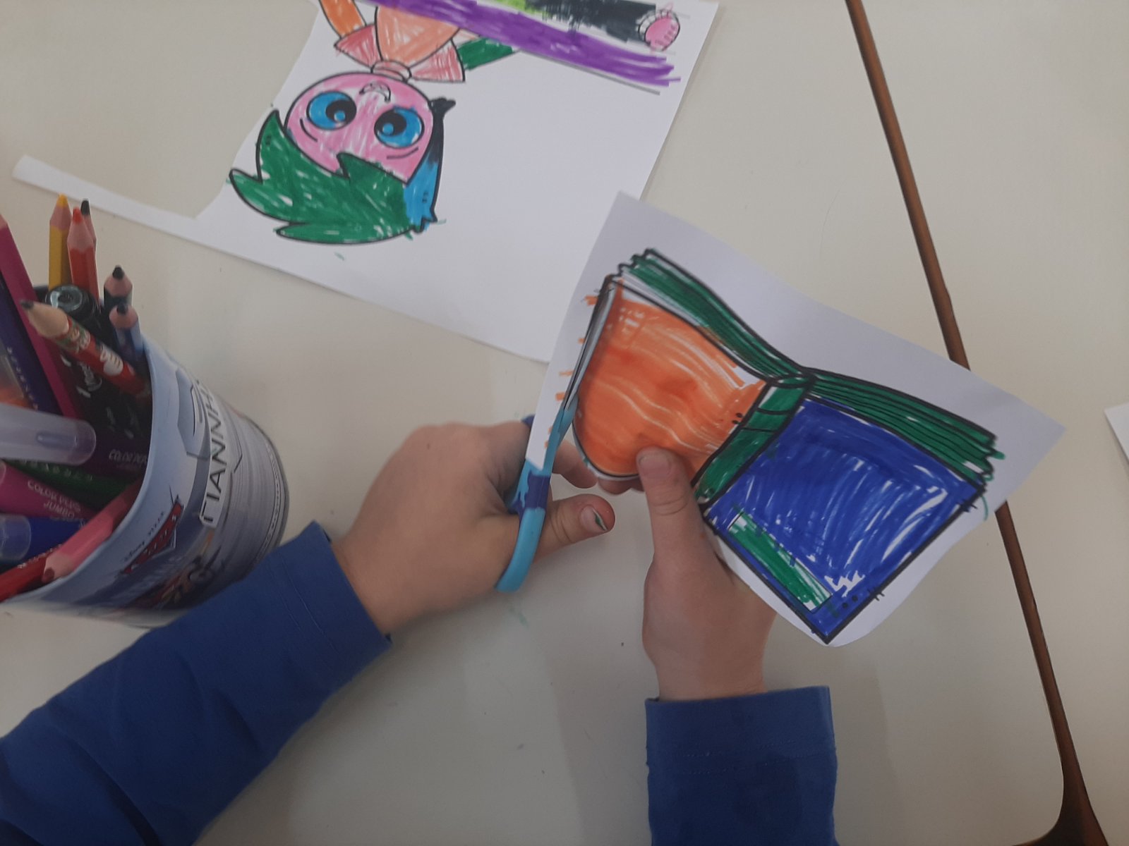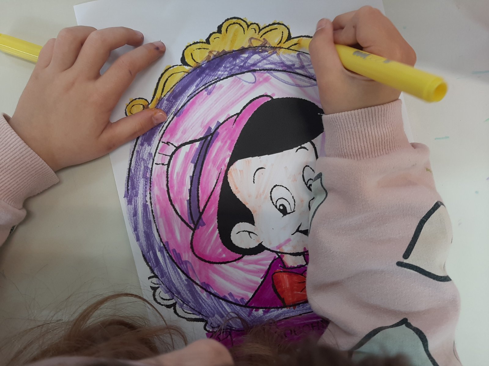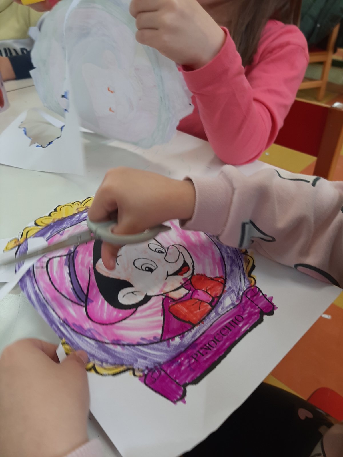 ΔΗΜΙΟΥΡΓΙΑ ΚΑΙ ΕΚΦΡΑΣΗ: Κατασκευή:”Ο ΠΙΝΟΚΙΟ ΜΕ ΜΑΓΙΚΗ ΜΥΤΗ”. Σήμερα τα παιδιά ασχολήθηκαν με μια ξεχωριστή κατασκευή εμπνευσμένη από τον αγαπημένο ήρωα, τον Πινόκιο. Αρχικά, ζωγράφισαν με φαντασία και χρώματα τον Πινόκιο τους. Στη συνέχεια, έκοψαν προσεκτικά τη φιγούρα του και πρόσθεσαν μια ιδιαίτερη λεπτομέρεια: μια μύτη από γλωσσοπίεστρο σε διάφορα χρώματα! Μόλις ολοκληρώθηκε η κατασκευή, τα παιδιά κόλλησαν το έργο τους σε ένα χαρτονάκι, δημιουργώντας έτσι έναν μοναδικό Πινόκιο. Μέσα από αυτή τη δραστηριότητα, εξάσκησαν τη λεπτή κινητικότητα, την αντίληψη των σχημάτων και των χρωμάτων, ενώ παράλληλα είχαν την ευκαιρία να εκφράσουν τη δημιουργικότητά τους.