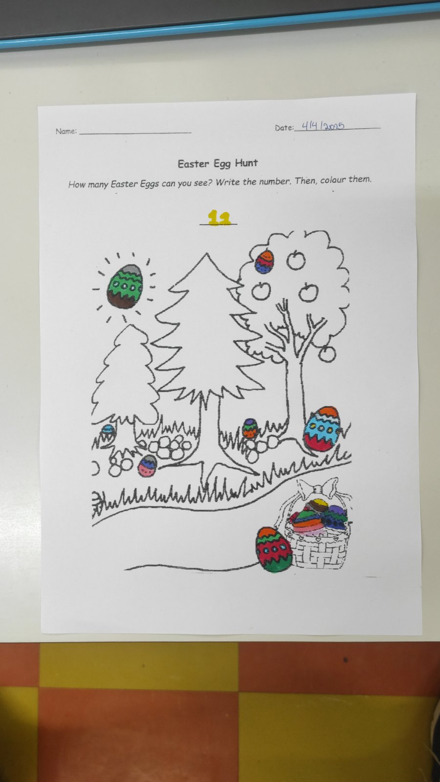 ΑΓΓΛΙΚΑ:Σήμερα στα αγγλικά ασχολήθηκαμε με τους αριθμούς 1-10. Ακούσαμε το τραγούδι There were 10 in the bed και μετρήσαμε τα ζωάκια. Στη συνέχεια, βάλαμε τον αριθμό των αυγών που ακούγαμε μέσα στο καλάθι και εντοπίσαμε τα αυγά στο φύλλο εργασίας μας