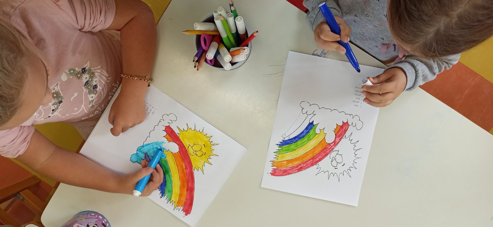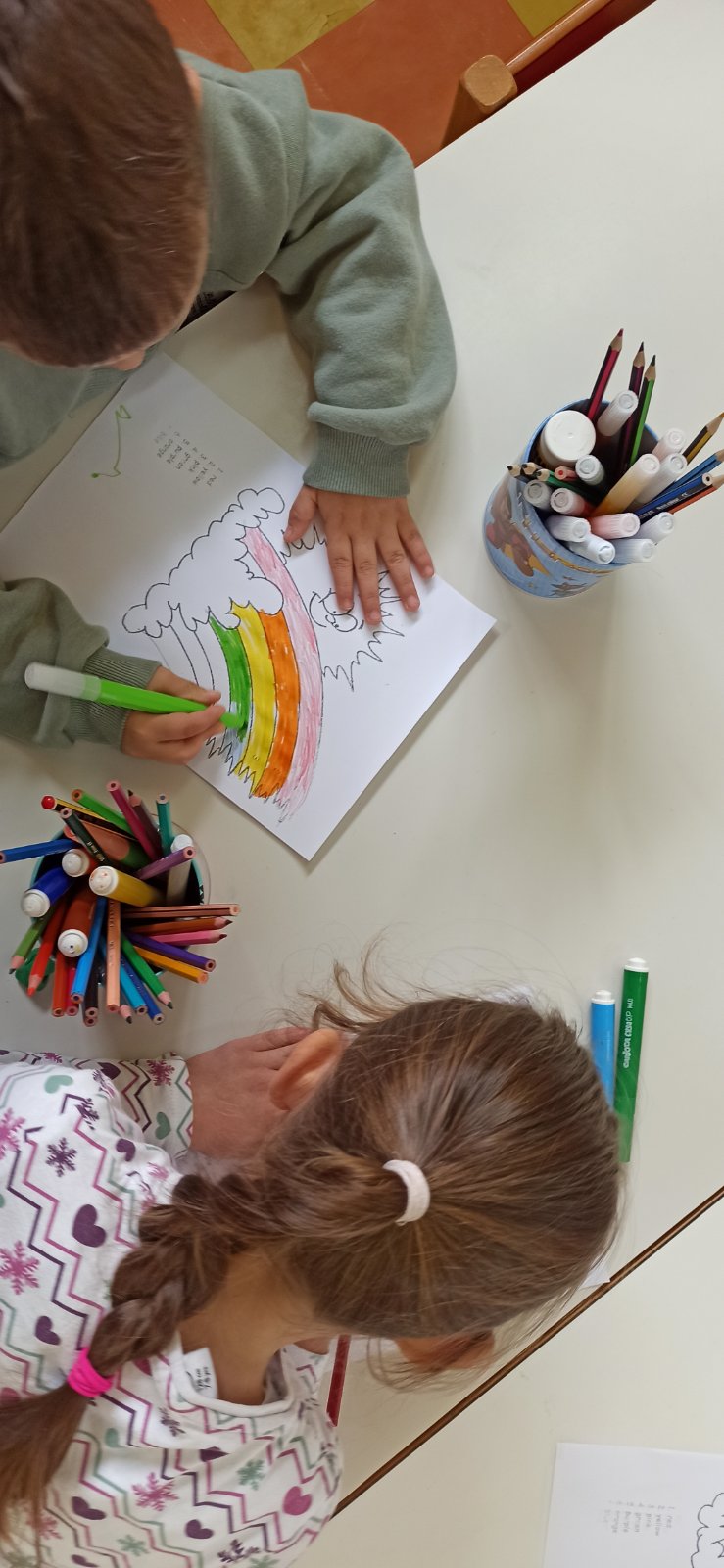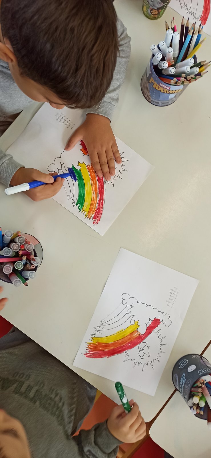 ΑΓΓΛΙΚΑ:Σήμερα επεκτάθηκαμε στα χρώματα και με το τραγούδι the rainbow song μάθαμε το orange, purple and pink. Επίσης με καινούργια action songs τραγουδήσαμε και μάθαμε αντίθετες έννοιες big/small, open/shut, loud/quiet, fast/slow κτλ.