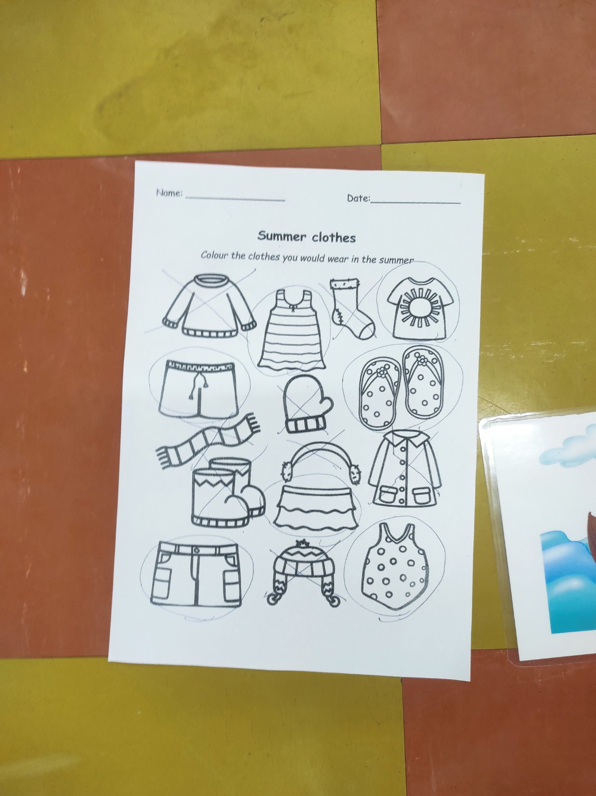 ΑΓΓΛΙΚΑ:Σήμερα στα αγγλικά ασχολήθηκαμε με τα καλοκαιρινά ρούχα. Αφού κάναμε επανάληψη τα χειμερινά, είδαμε το καινούριο λεξιλόγιο και κατηγοριοποιησαμε τις λέξεις με τη βοήθεια του υπολογιστή. Στη συνέχεια χρωματισαμε τα καλοκαιρινά ρούχα και παίξαμε παιχνίδι winter-summer