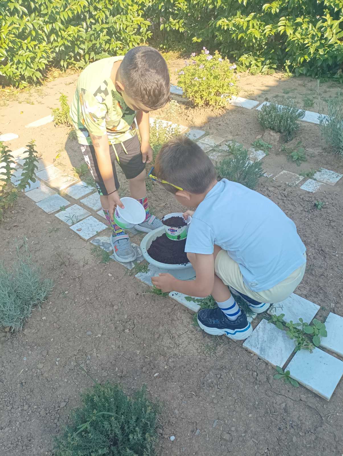 ΣΧΟΛΙΚΟΣ ΚΗΠΟΣ : Οι μικροί κηπουροι του 1ου Νηπιαγωγείου Καβαλαριου κάνουν τις τελευταίες εργασίες για τη φετινή σχολική χρονιά. Με μεγάλη φροντίδα και επιμέλεια προσθέτουν καφέ – λίπασμα περιμετρικά από τα αρωματικά βότανα του κήπου μας. Η διαδικασία αυτή τα γεμίζει ιδιαίτερη χαρά και τα μυει υποσυνείδητα στο να γίνουν ενήλικες με αγάπη για τη φύση και το περιβάλλον. Τον καφέ μας τον παρείχε με προθυμία η κ. Έλενα (μαμά του Απόστολου Κ.).