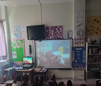 Η νηπιαγωγός έδειξε στα παιδιά μια φωτογραφία με έναν βυθό όλο χρώματα, γεμάτο ψάρια και κοράλλια. Εντυπωσιασμένα τα παιδιά σχολίασαν τι παρατηρούσαν. Στη συνέχεια, εμφανίστηκε μια άλλη φωτογραφία με μια θαλάσσια χελώνα και τα κοράλλια κατεστραμμένα.