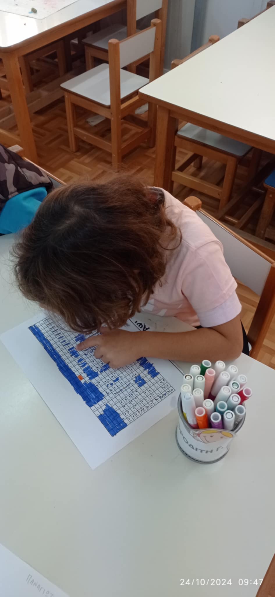 Επί προσθέτως, το Νηπιαγωγείο μας συμμετείχε στην Ευρωπαϊκή εβδομάδα κώδικα με 2η δραστηριότητα εξοικείωσης στο δυαδικό σύστημα, ζωγραφίζοντας την Ελληνική σημαία, με τη βοήθεια της δασκάλας των αγγλικών μας, κ. Περμαθίας Παπαναστασίου.