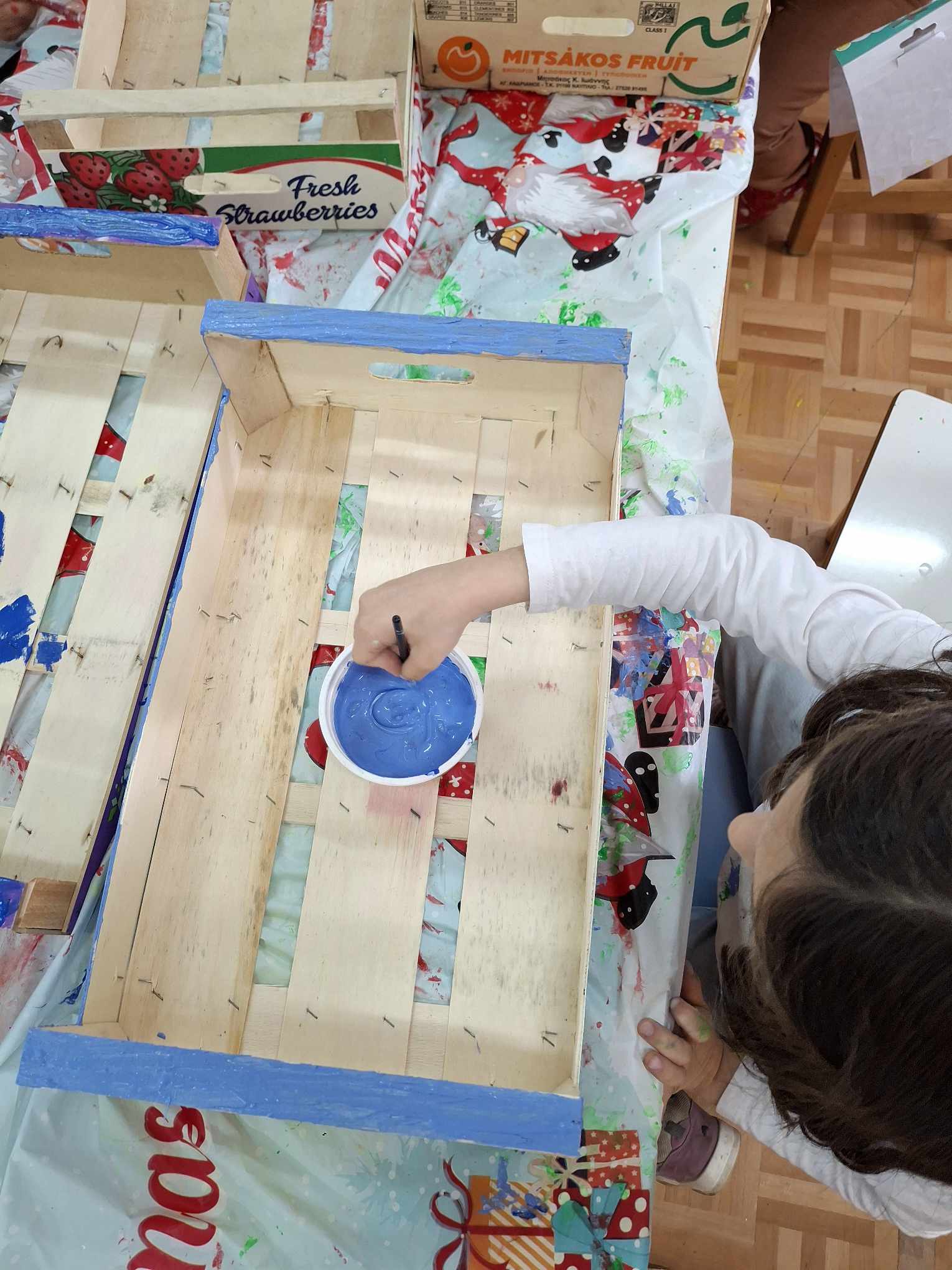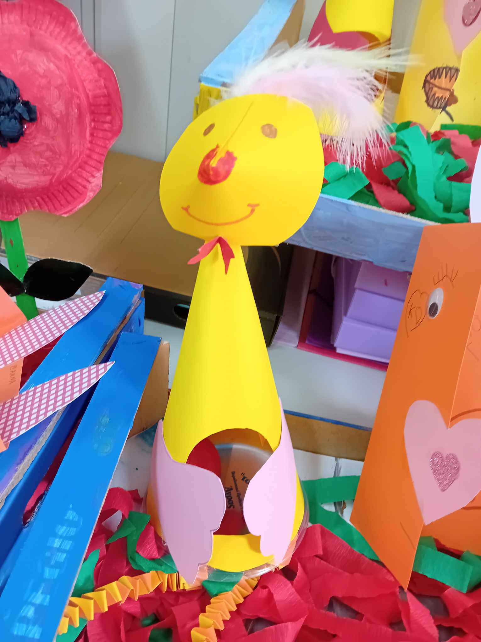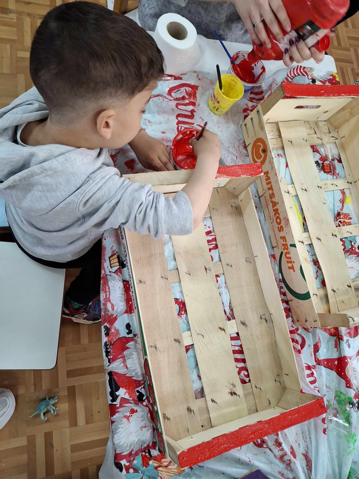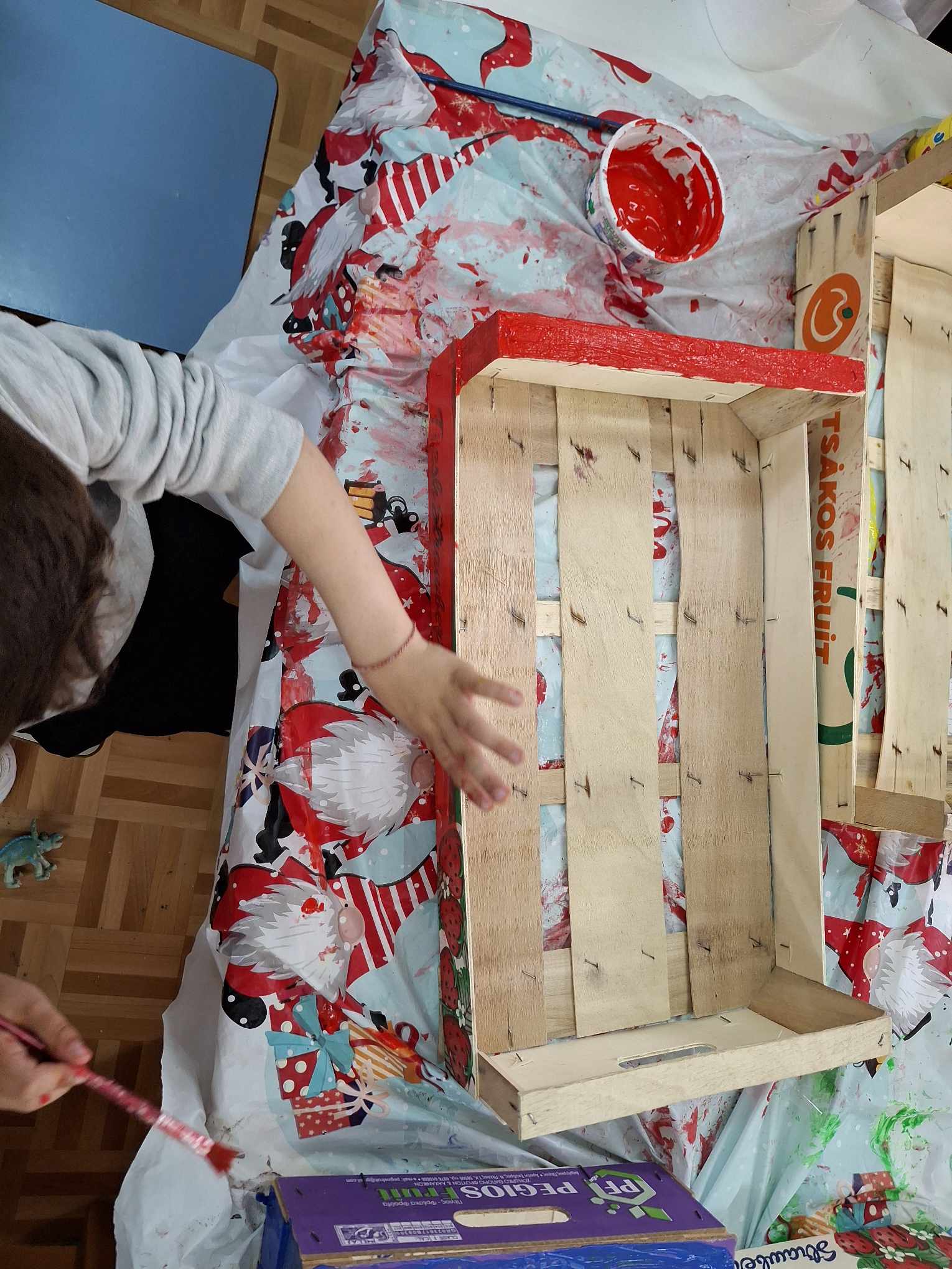 Σε επόμενη χρονική στιγμή, αφού βράσαμε τα αβγά μας, τα βάψαμε με τη χρήση πινέλων και κόκκινης τέμπερας και μέχρι να στεγνώσουν, κατασκευάσαμε αυγοθήκες σε σχήμα κότας προκειμένου να τοποθετηθούν τα αβγά εντός της θήκης μαζί με σοκολατένιες πασχαλινές λιχουδιές. Αξιοσημείωτο είναι το γεγονός ότι, τα παιδιά, κατά την ώρα των ελεύθερων δραστηριοτήτων, επηρεασμένα απο το κλίμα των ημερών, δημιούργησαν πολλές πασχαλινές ζωγραφιές καθώς και κατασκευές με πλαστελίνη (επιτάφιο, παπαρούνες, εκκλησία). Φυσικά, τα παιδιά, καθ’ όλη την πασχαλινή περίοδο, συμπλήρωσαν φύλλα εργασίας στα θεματικά πεδία της Γλώσσας και των Μαθηματικών και έπαιξαν εκπαιδευτικά παιχνίδια στην εκπαιδευτική πλατφόρμα wordwall.