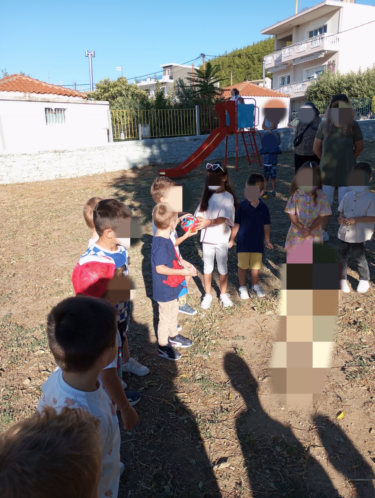 Λίγο πριν τον καθιερωμένο αγιασμό για τη νέα σχολική χρονιά συγκεντρωθήκαμε όλοι, μικροί και μεγάλοι, στον αύλειο χώρο του νηπιαγωγείου.