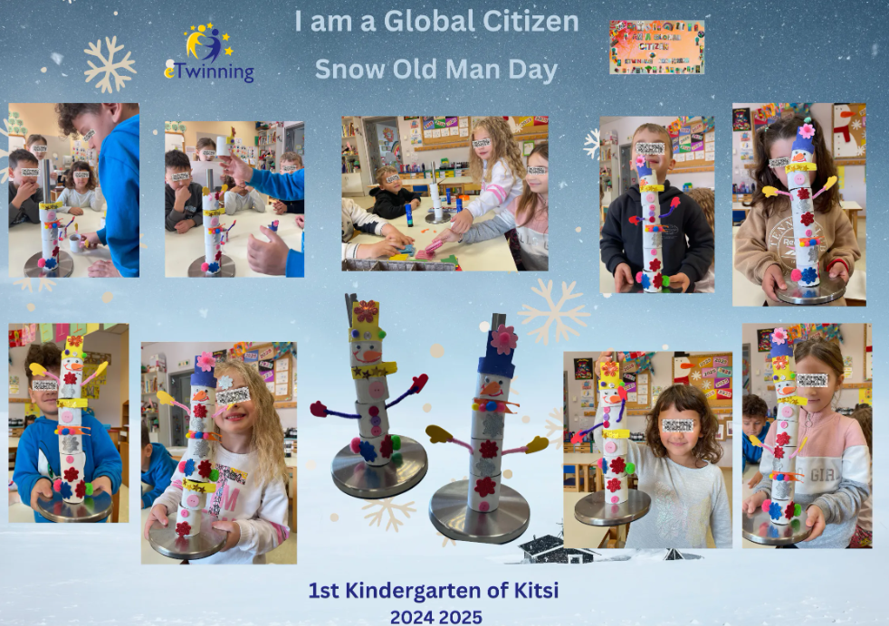 Οι μαθητές συμμετείχαν σε μια διασκεδαστική και εκπαιδευτική δραστηριότητα με θέμα τον χιονάνθρωπο! Ξεκινήσαμε χωριζόμενοι σε μικρές ομάδες και συνεργαστήκαμε για να κατασκευάσουμε δύο κάθετους χιονάνθρωπους, καθένας από τους οποίους αποτελούνταν από τέσσερα μέρη. Η ομαδική αυτή εργασία ενίσχυσε την επικοινωνία, τη συνεργασία και την επίλυση προβλημάτων. Στη συνέχεια, κάθε παιδί δημιούργησε τον δικό του μοναδικό χιονάνθρωπο, προσθέτοντας ή αφαιρώντας κομμάτια, ενισχύοντας έτσι τη δημιουργικότητα και τη λήψη αποφάσεων. Τα παιδιά εξάσκησαν τις λεπτές κινητικές δεξιότητες, τον χωρικό προσανατολισμό και την ακολουθία βημάτων, ενώ εξερεύνησαν έννοιες όπως το μέγεθος, το σχήμα και η ισορροπία. Η δραστηριότητα προκάλεσε χαρά και περιέργεια, καθώς δοκίμαζαν διαφορετικούς συνδυασμούς, δημιουργώντας κάθε φορά έναν νέο χιονάνθρωπο.