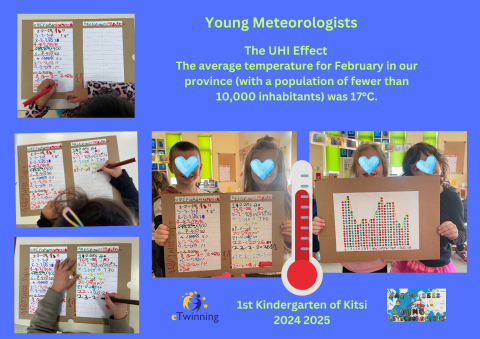 Οι μαθητές μέτρησαν καθημερινά τη θερμοκρασία του αέρα και της γης, καταγράφοντας τα αποτελέσματα και συνεργάστηκαν για να κατανοήσουν τις διαφορές μεταξύ καιρού και κλίματος.